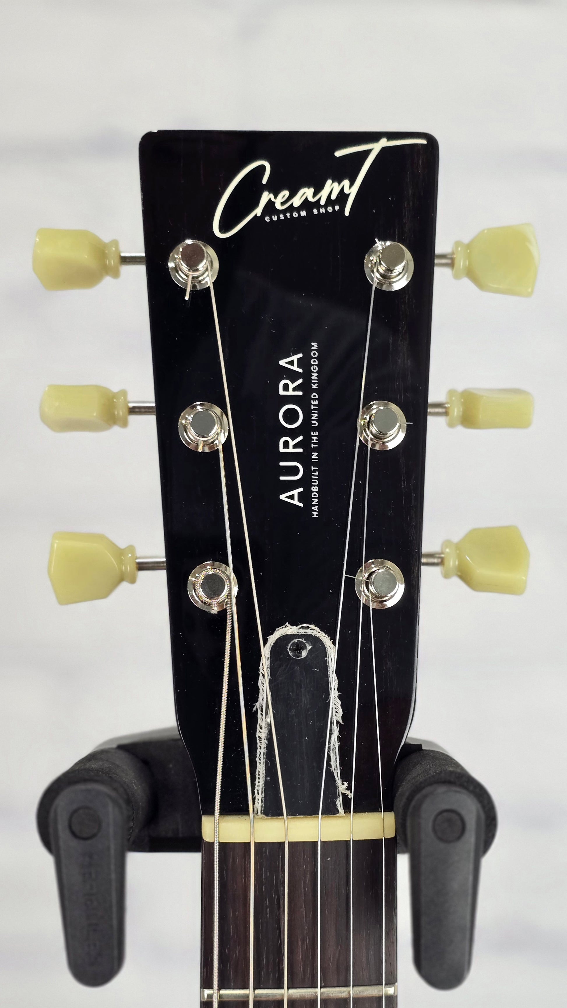 Cream T has done it again! Designed in conjunction with Billy Gibbons (ZZ Top), Billy's idea was to take influences from three of his favourite guitars, the Les Paul, Telecaster, and Martin acoustic, and combine them into one killer guitar. Those influences are clear, resulting in a new shape that ticks all the boxes: looks, playability, and balance. It was the dream collaboration, and the result was our first guitar model, the Cream T Aurora.
