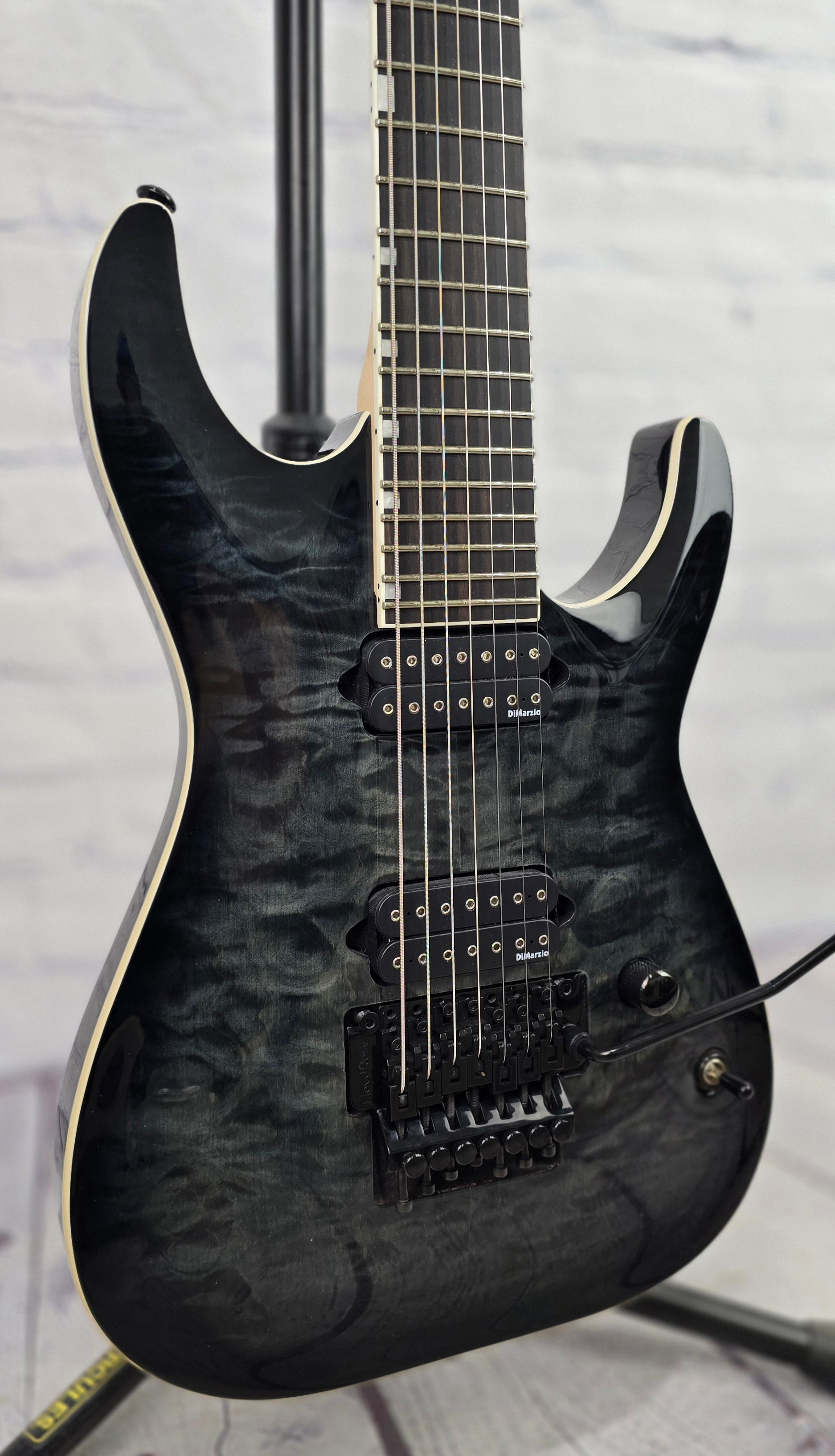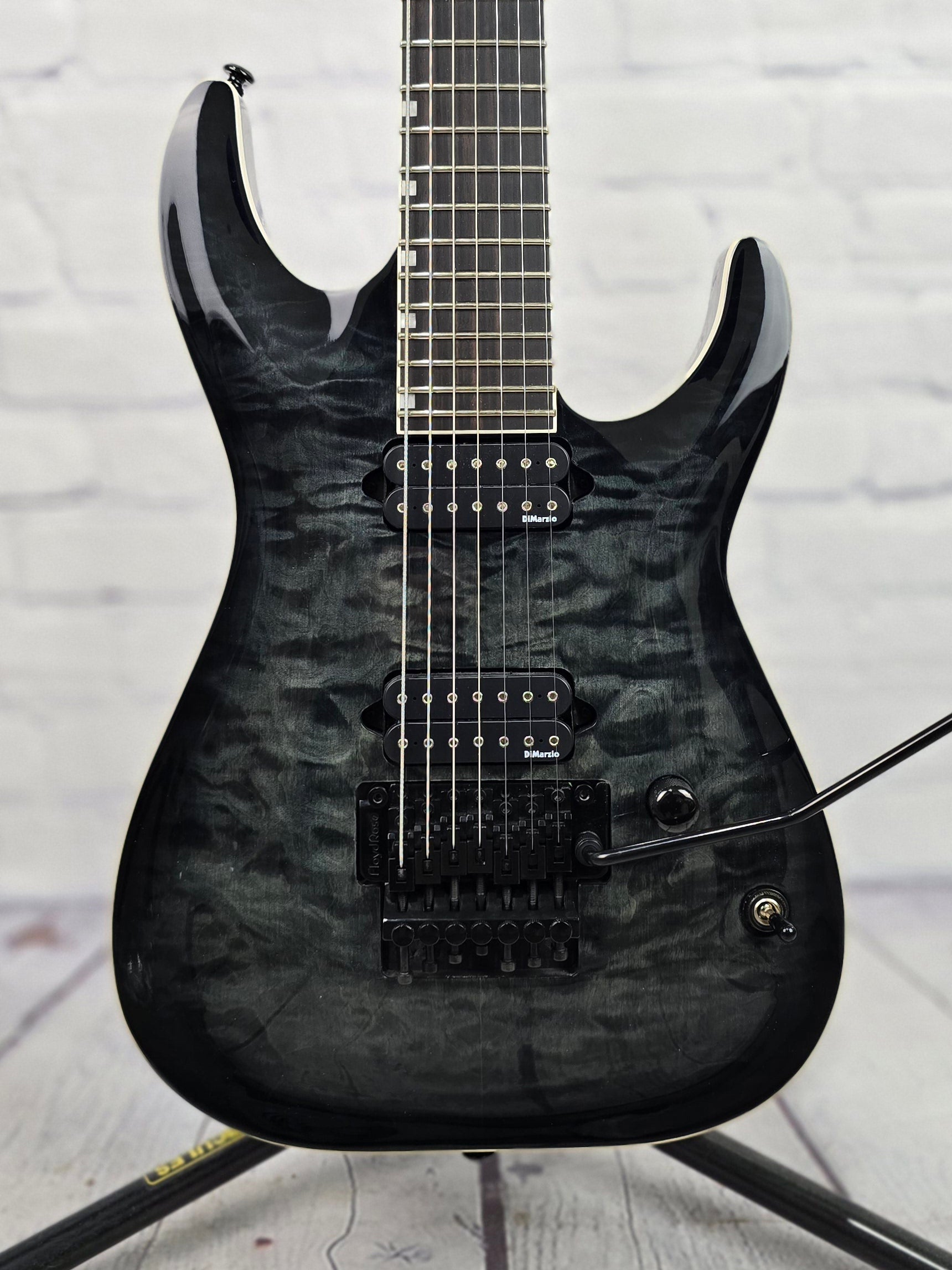 Just in @ Guitar Brando - very nice, lightly played LTD Ben Savage Baritone (26.5") 7 String Guitar. Loaded with DiMarzio D Activator pickups, Floyd Rose tremolo and a gorgeous quilt maple top - this thing is a BEAST!!