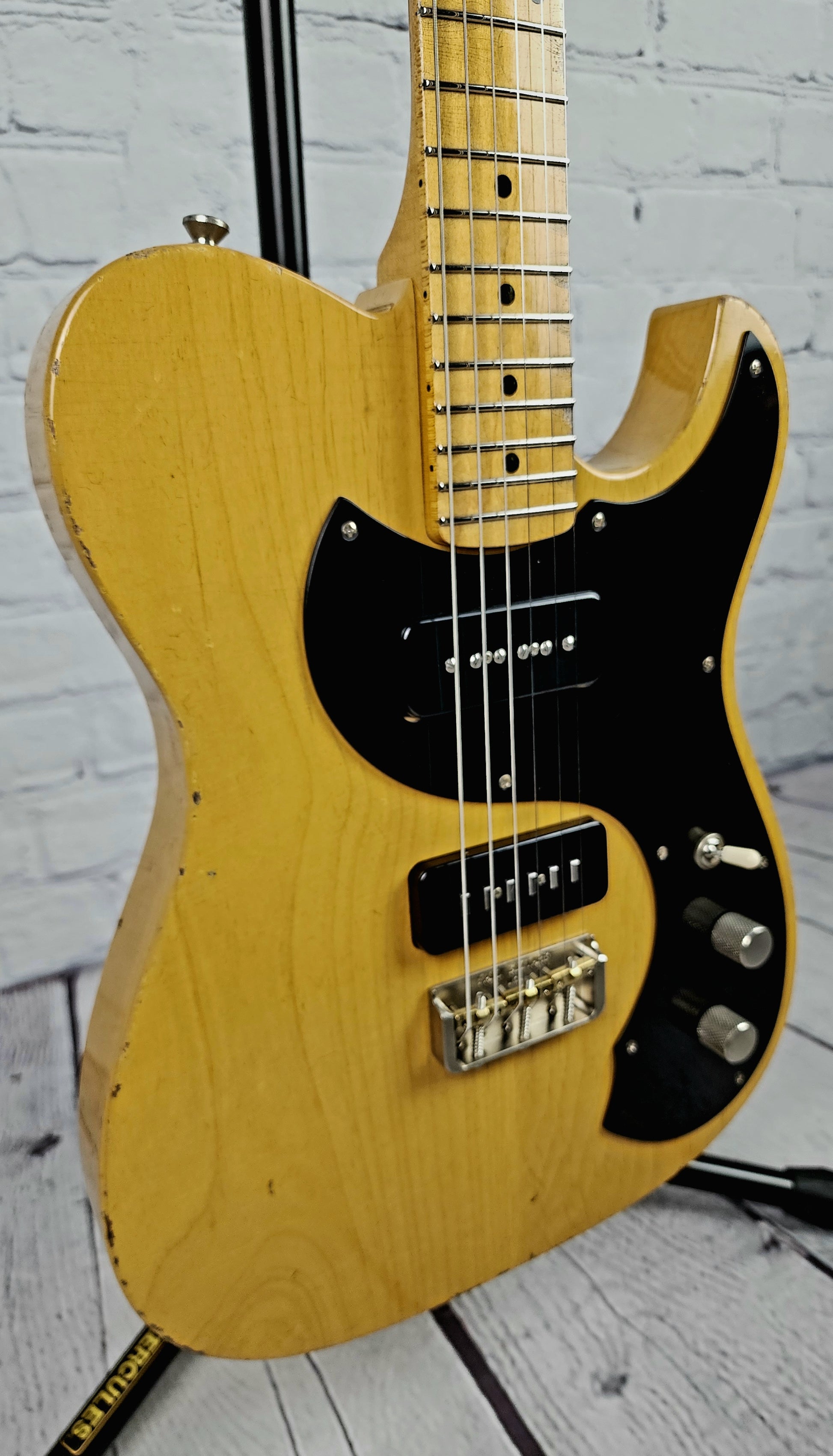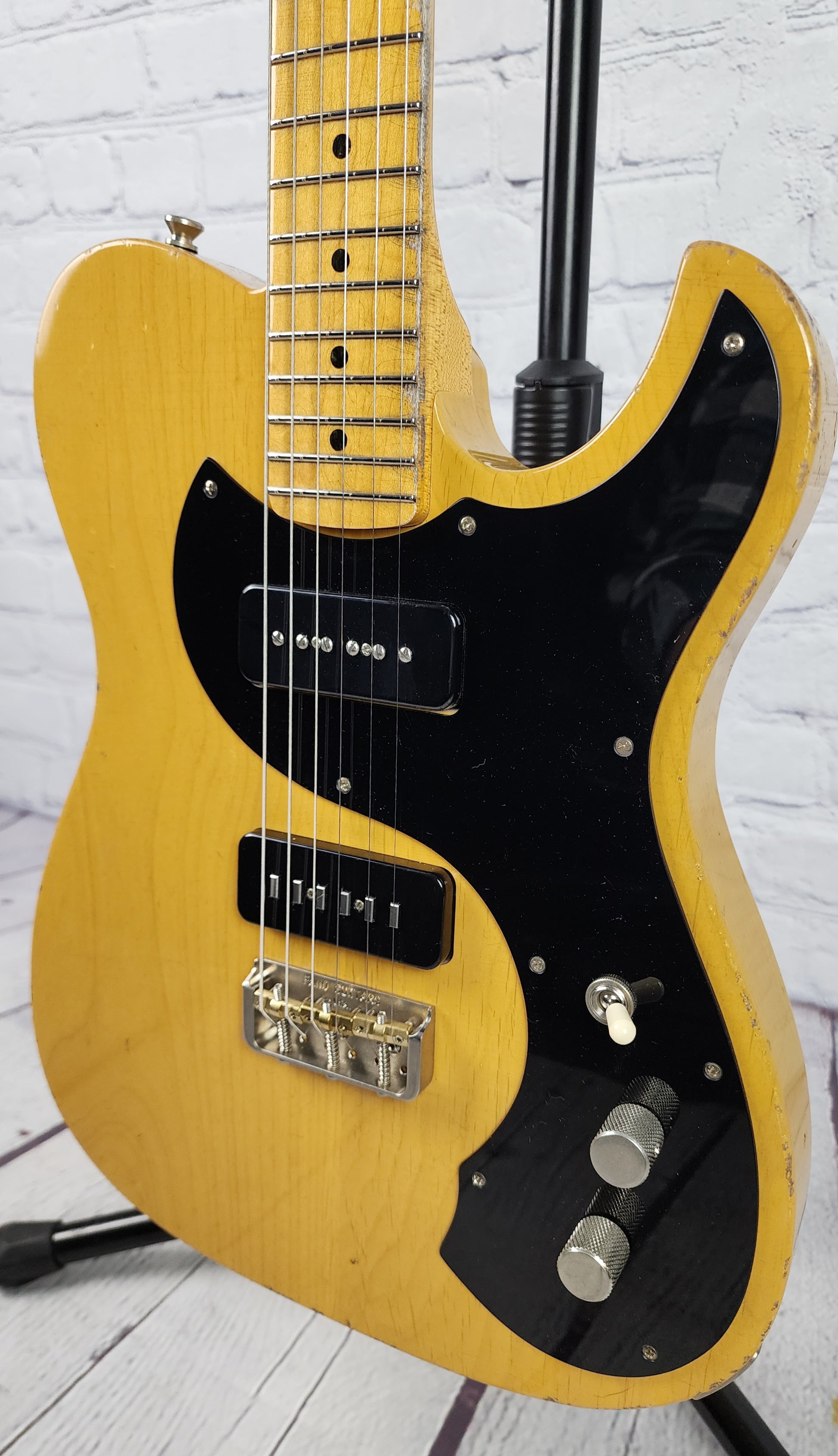 This particular guitar features a gorgeous Ocean Turquoise finish with light body distress, paired with a medium distress neck/headstock for the ultimate in broken in comfort. The P90 pickups provide a nice mix of bite and body, while still offering that traditional T-style snap and twang.