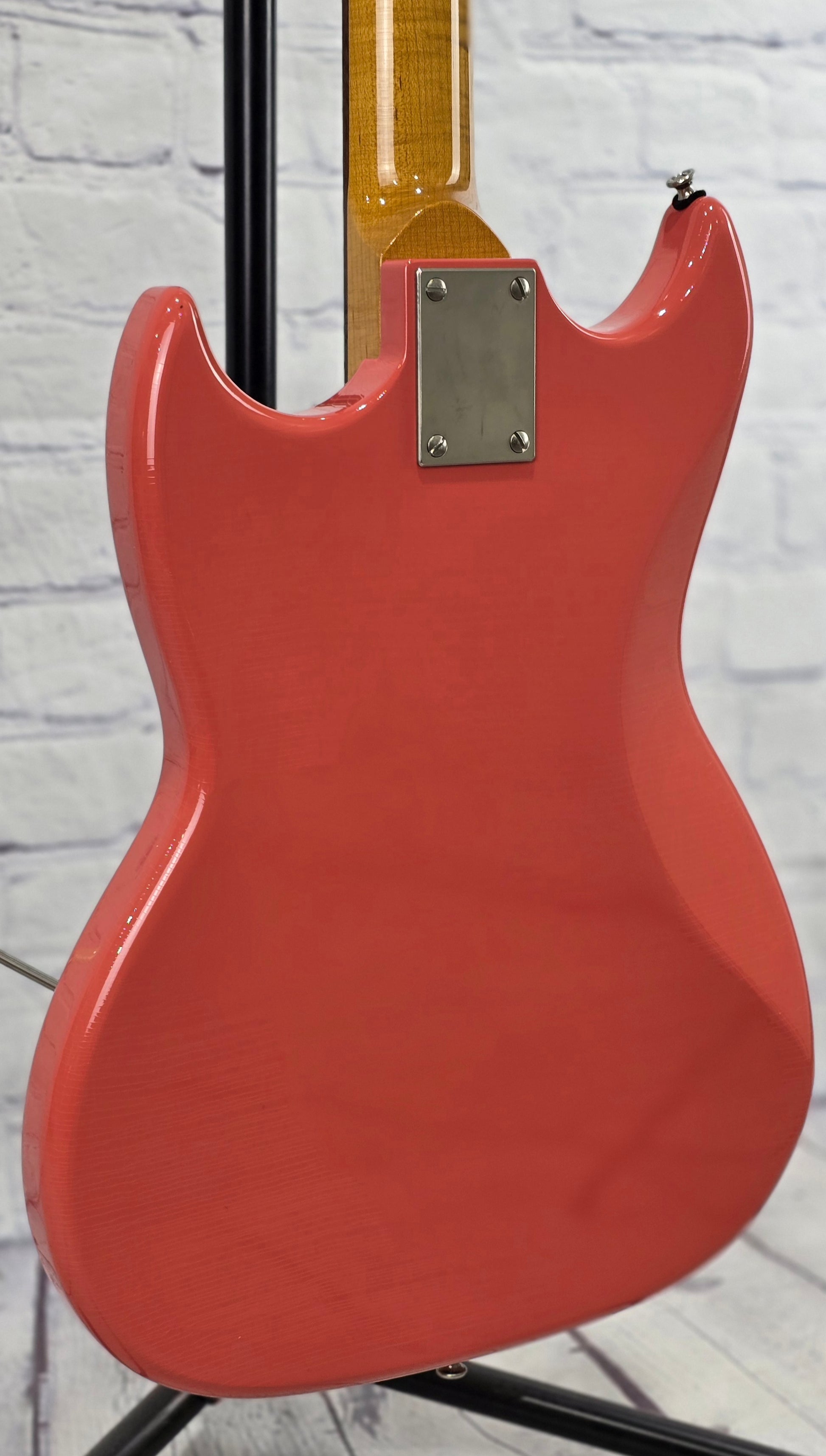 Toronto's Frank Brothers have done it again! This Sonar feels at once novel and fresh, while simultaneously visually familiar, paying tribute to the solid slab bodies guitars of yesteryear. Finished in a vintage-reminiscent Tahitian Coral with light aging, this guitar looks almost as good as it plays! The slim C shaped neck feels like it teleported out of the 1960s and the guitar remains balanced without a hint of neck-dive.