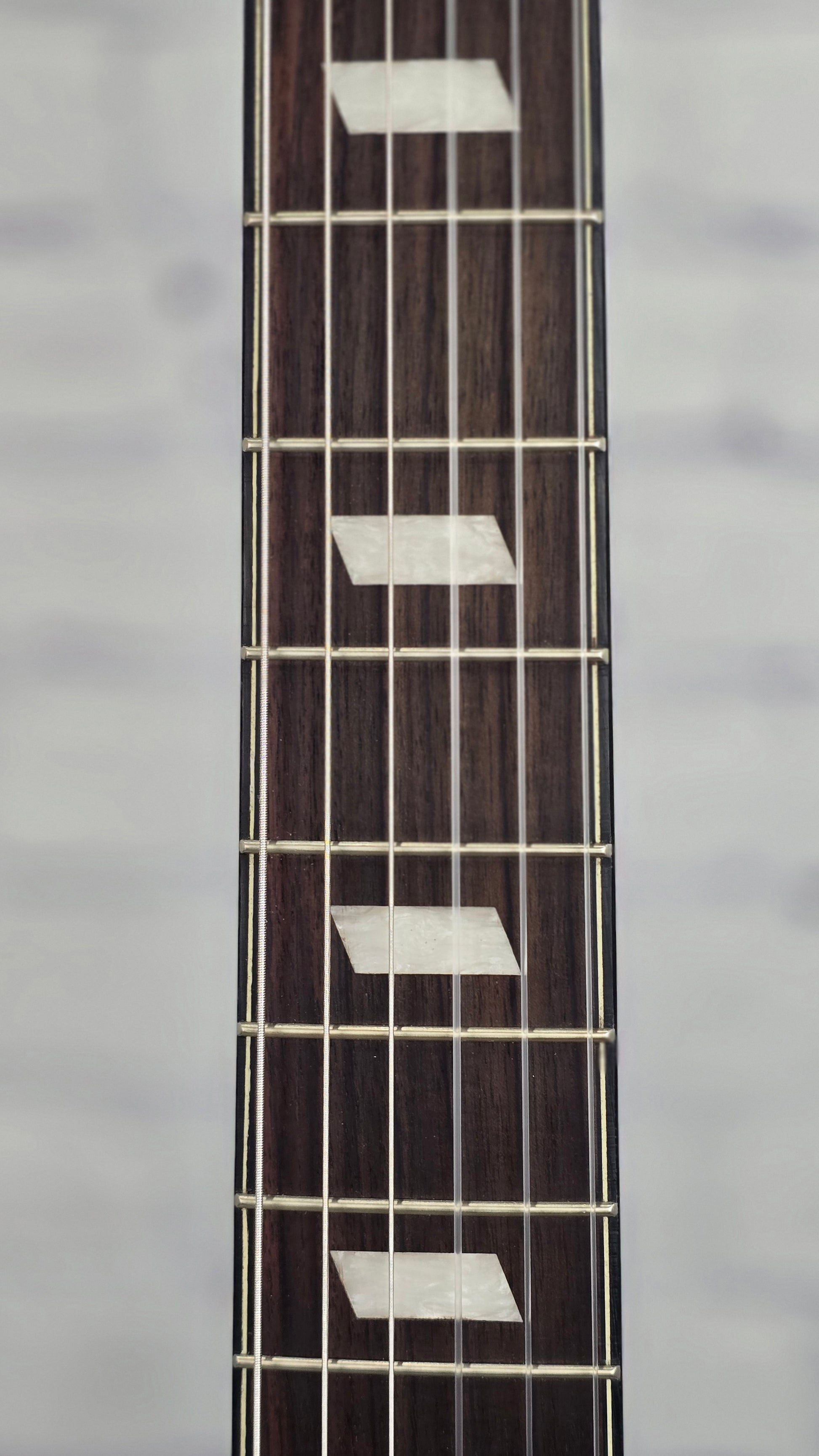 Rosewood fretboard provides a well-balanced solid tone with a focused mid range.