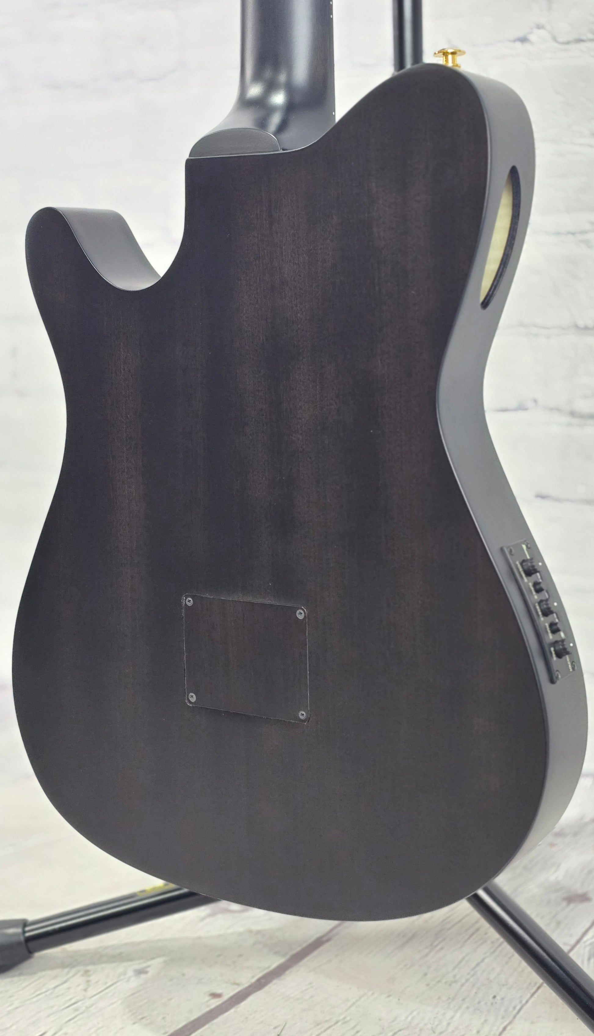 It has less feedback as there's no sound hole on the body top, so it's perfect for stage and home use. Its sound port on the body side allows you to feel and hear the pure acoustic tone of this guitar more clearly and directly.