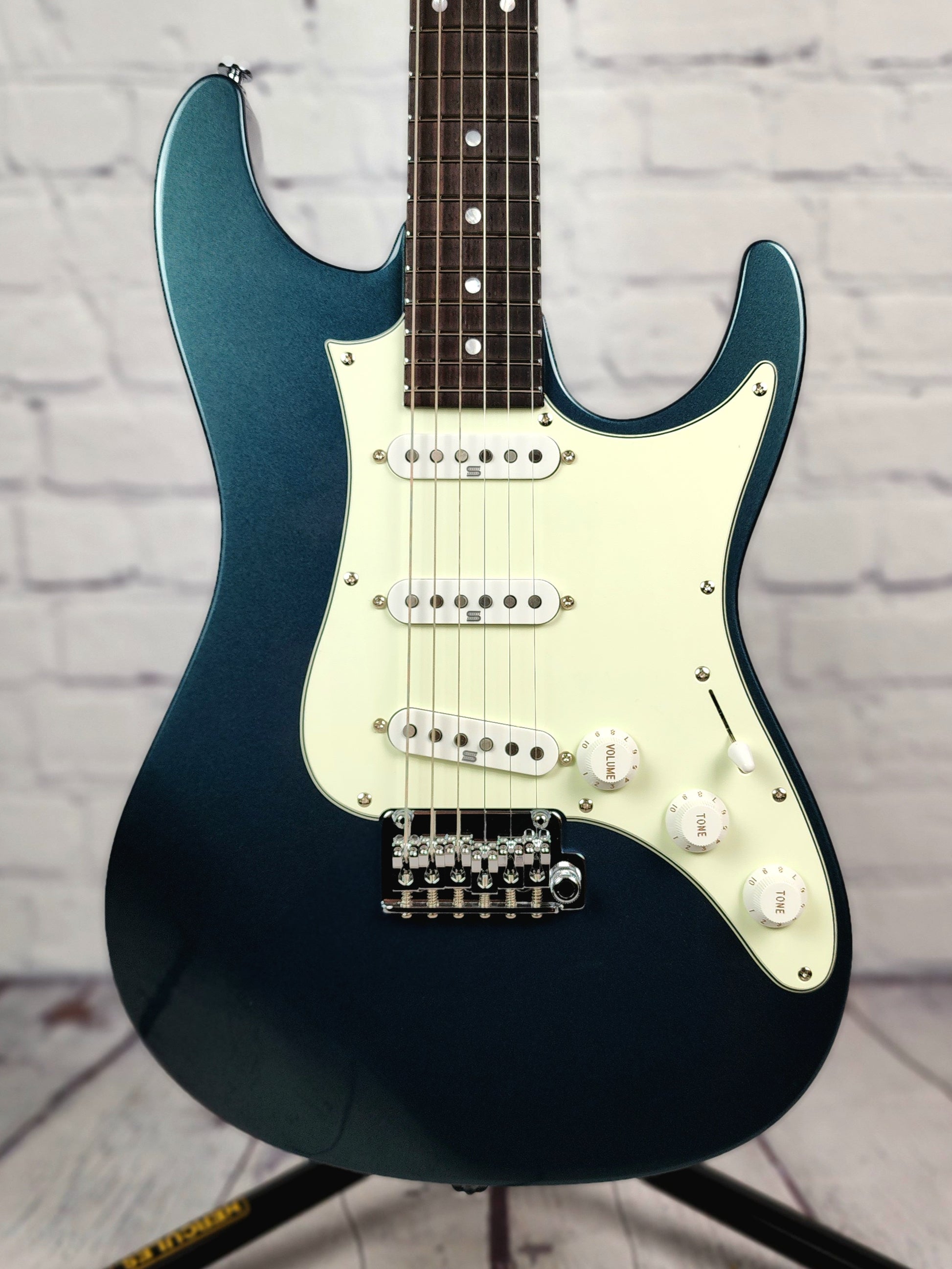 Just in @ Guitar Brando - this is a new guitar which has had the case and trem arm go missing somewhere. Guitar is brand new (store display only) and we have this marked down to help sell as demo. Cases available for sale to add on.