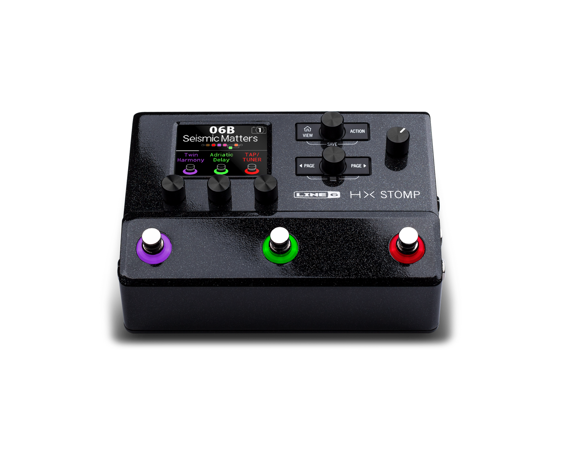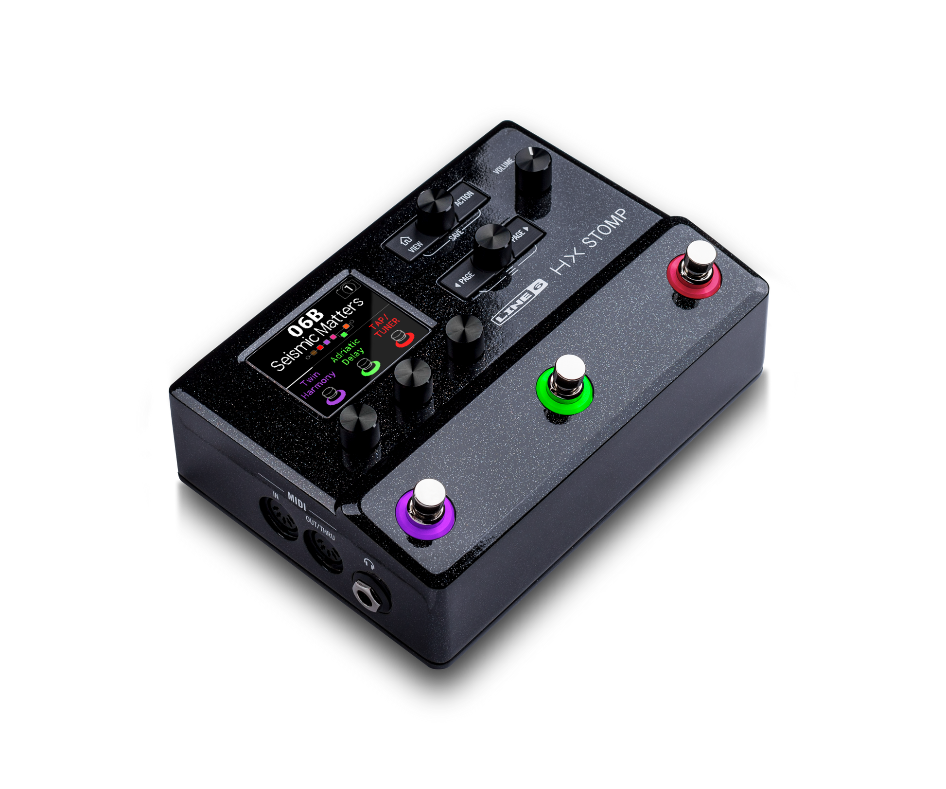 HX Stomp™ is a professional-grade guitar processor that delivers the sound of Helix® amps, cabs, and effects in an ultra-compact pedal. Use it as a “super stompbox,” a backup or travel rig, an add-on tone expander when combined with other modelers, an audio interface—or even a complete guitar or bass rig. The same HX Modeling technology that powers the flagship Helix guitar processor enables HX Stomp to run up to six processing blocks simultaneously, making it the most powerful and flexible stompbox-sized guitar processor available. HX Stomp is easy to operate, however, thanks to its simple-but-powerful controls, 320 x 240-pixel color LCD, and capacitive-sensing footswitches with color-coded LED rings. External control via MIDI and optional expression pedal and footswitch control provide additional flexibility, as does I/O that may be configured for sophisticated routing such as simultaneously feeding an amp and a FOH mixer, 4-Cable Method operation with an amplifier, and studio re-amping. There are over 300 amps, cabs, and effects—including a looper. HX Stomp contains all the same HX models found in Helix family products, as well as the legacy effects library from Line 6® M-Series pedals, and stompbox modelers such as the DL4™, MM4™, FM4™, and DM4™. There are also presets created specifically for bass players, as well as individual bass amp and cab models. The free HX Edit app offers preset librarian functionality and third-party IR loading.