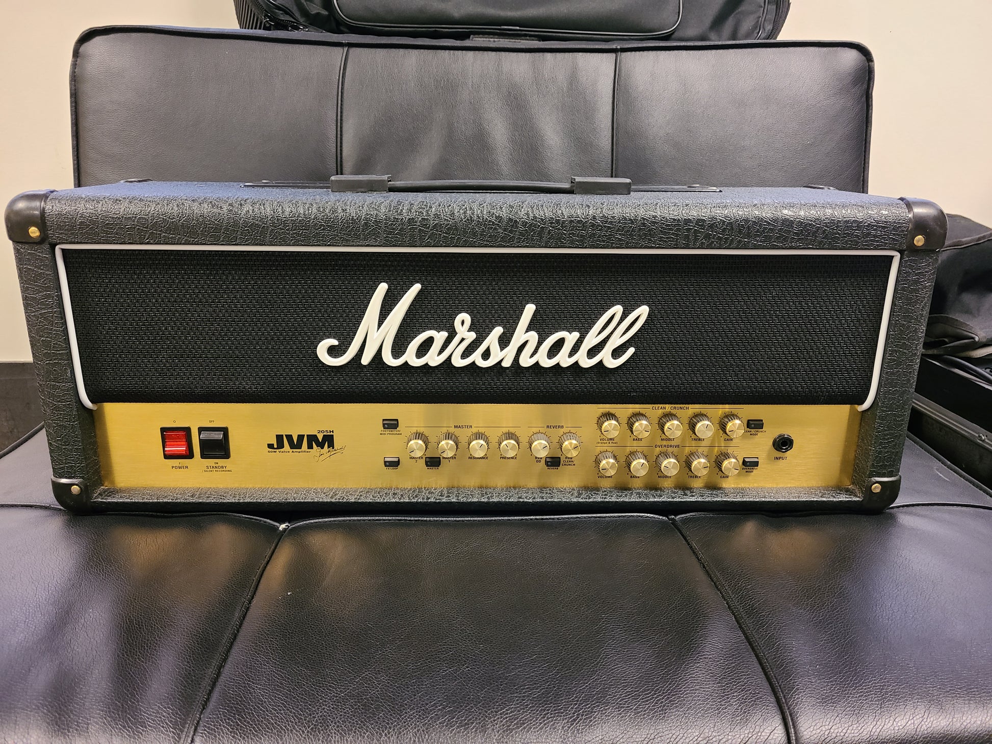 USED Marshall JVM205H Tube Head just in!! Overall condition is very clean. Used in a studio setting, this has very rarely traveled and it is clear to see. Comes with footswitch and slip cover.