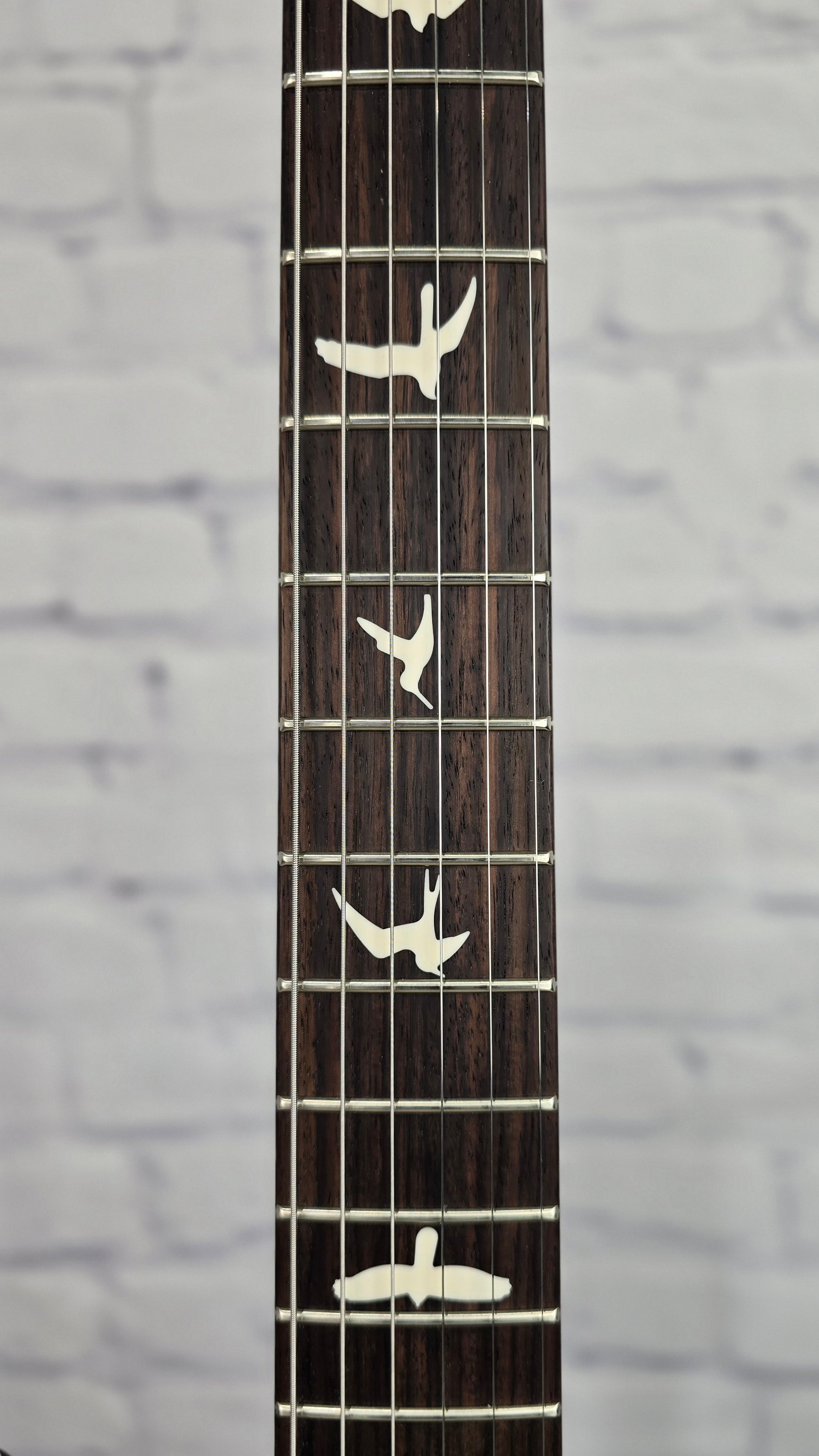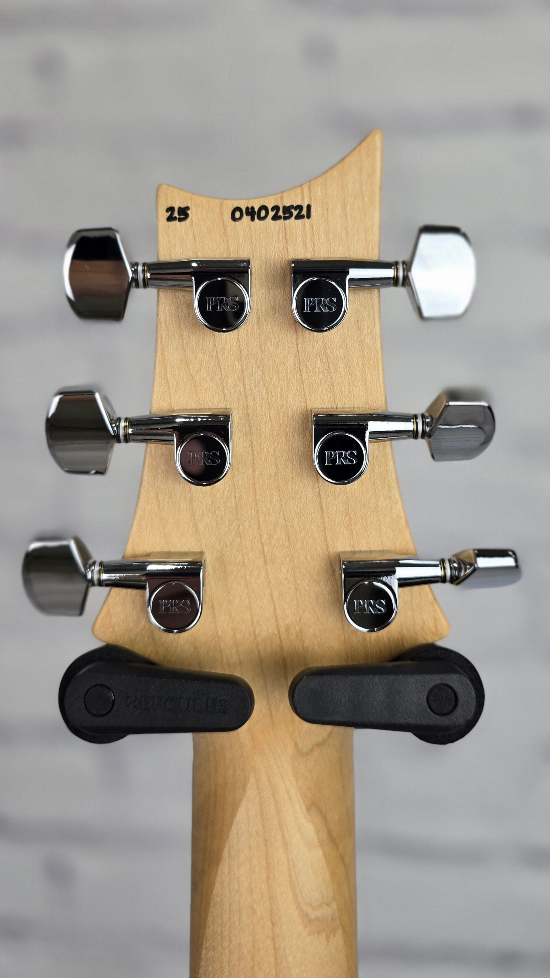 This guitar comes outfitted with PRS 85/15 pickups, delivering exceptional clarity with extended high and low end. The electronics layout features a volume and tone control with 3-way toggle switch and two mini-toggle coil-tap switches. This intuitive switching system offers eight different pickup settings that provide an array of humbucking and single coil tones, including a dual single coil option.