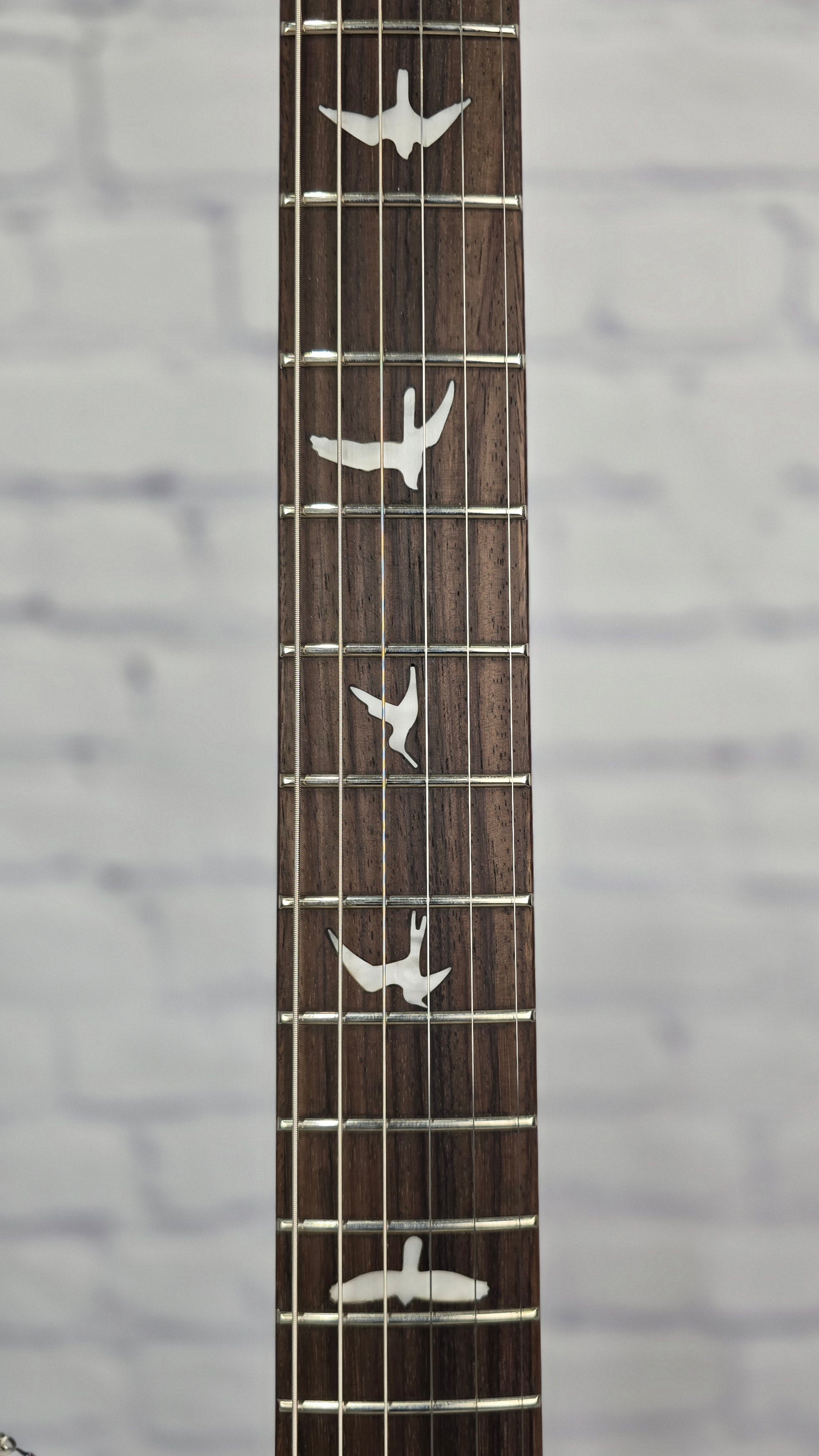The Custom 24 is the quintessential PRS guitar: the iconic guitar that started it all back in 1985. The Custom 24-08 keeps all the foundational specs of the instrument, while taking the Custom platform to new sonic territories. Like the Core Series instrument, the SE Custom 24-08 features two mini-toggle coil-split switches that individually split the humbuckers into true single coils for a total of eight pickup configurations. Classic design elements include a maple top, mahogany back, rosewood fretboard, 24 frets, 25” scale length, bird inlays, signature headstock logo, and PRS patented molded tremolo.