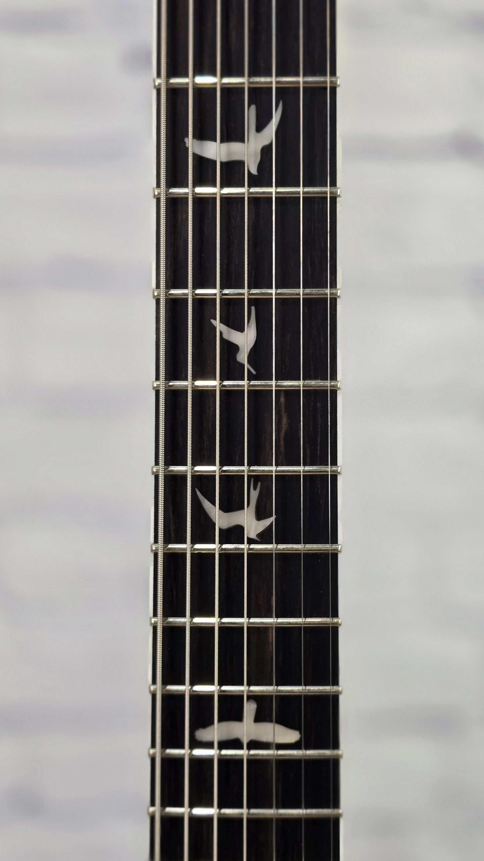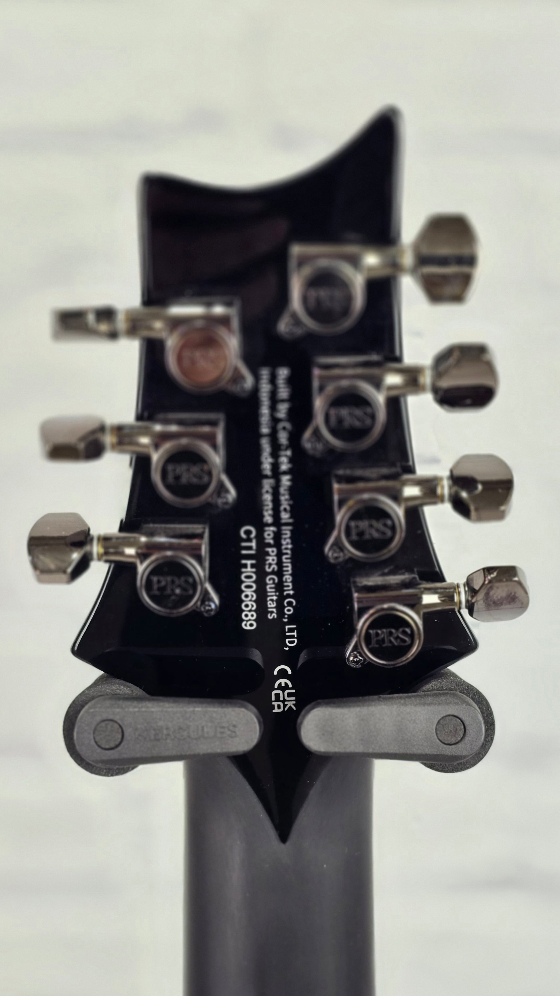 The SE Mark Holcomb SVN model truly stands on its own in the PRS lineup and delivers addictive playability thanks to some unique specifications, including a 24-fret, 26.5” scale length, wide thin satin maple neck with 20” radius ebony fretboard. Holcomb’s signature Seymour Duncan Alpha and Omega 7-string pickups provide the right amount of output and articulation whether you’re playing sophisticated chords or solos and whether you’re playing alone or working in the mix of a band. Other specifications include black hardware, a 3-way blade pickup switch with push/pull tone knob for coil splitting, and the choice of a quilted maple or walnut veneer. The model is topped off with coil-taps for the pickups and a string-through, plate-style, 7-string bridge.
