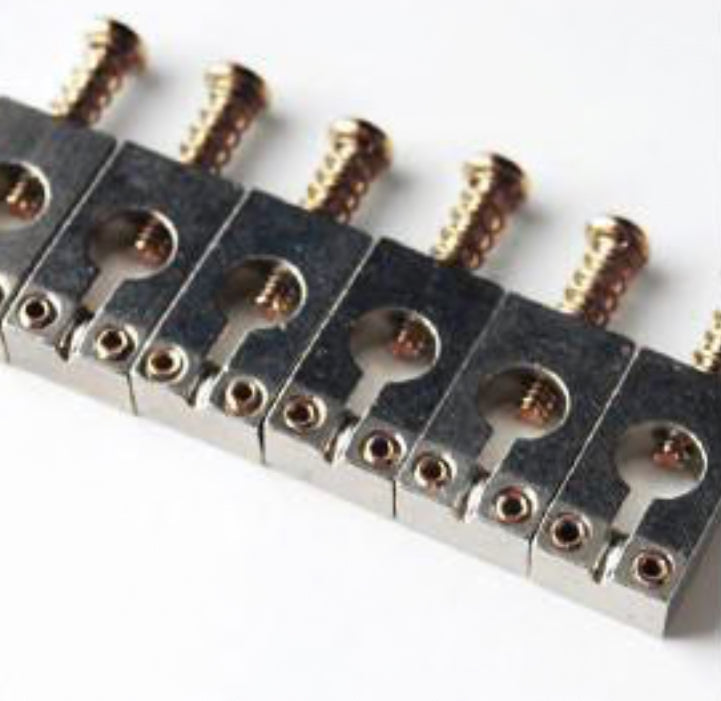 Tremolo Bridge Saddles - Fits all US-made PRS tremolo bridge models. Features unplated screws/springs. Set of six.