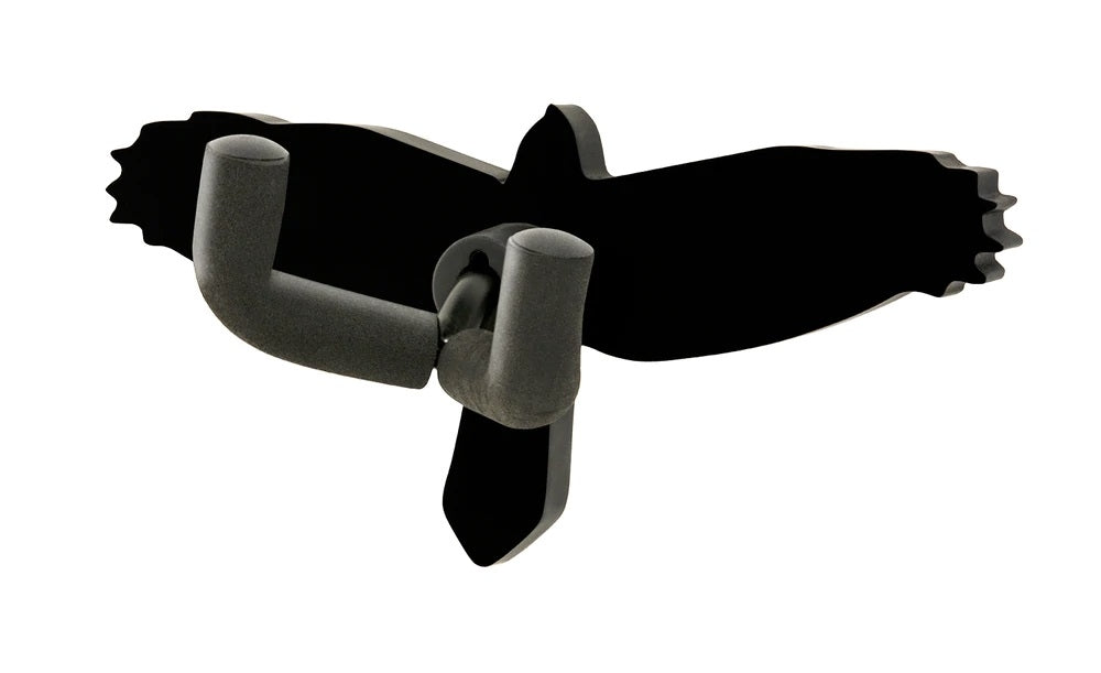 Give your guitar wings! The PRS Wall-Mounted Guitar Hanger lets you display your PRS in style. A metal insert keeps your hanger securely fixed to the wall, and the nitro-friendly foam wrapped hook safely cradles your guitar's headstock. Fits electric, acoustic, bass and offset models alike.