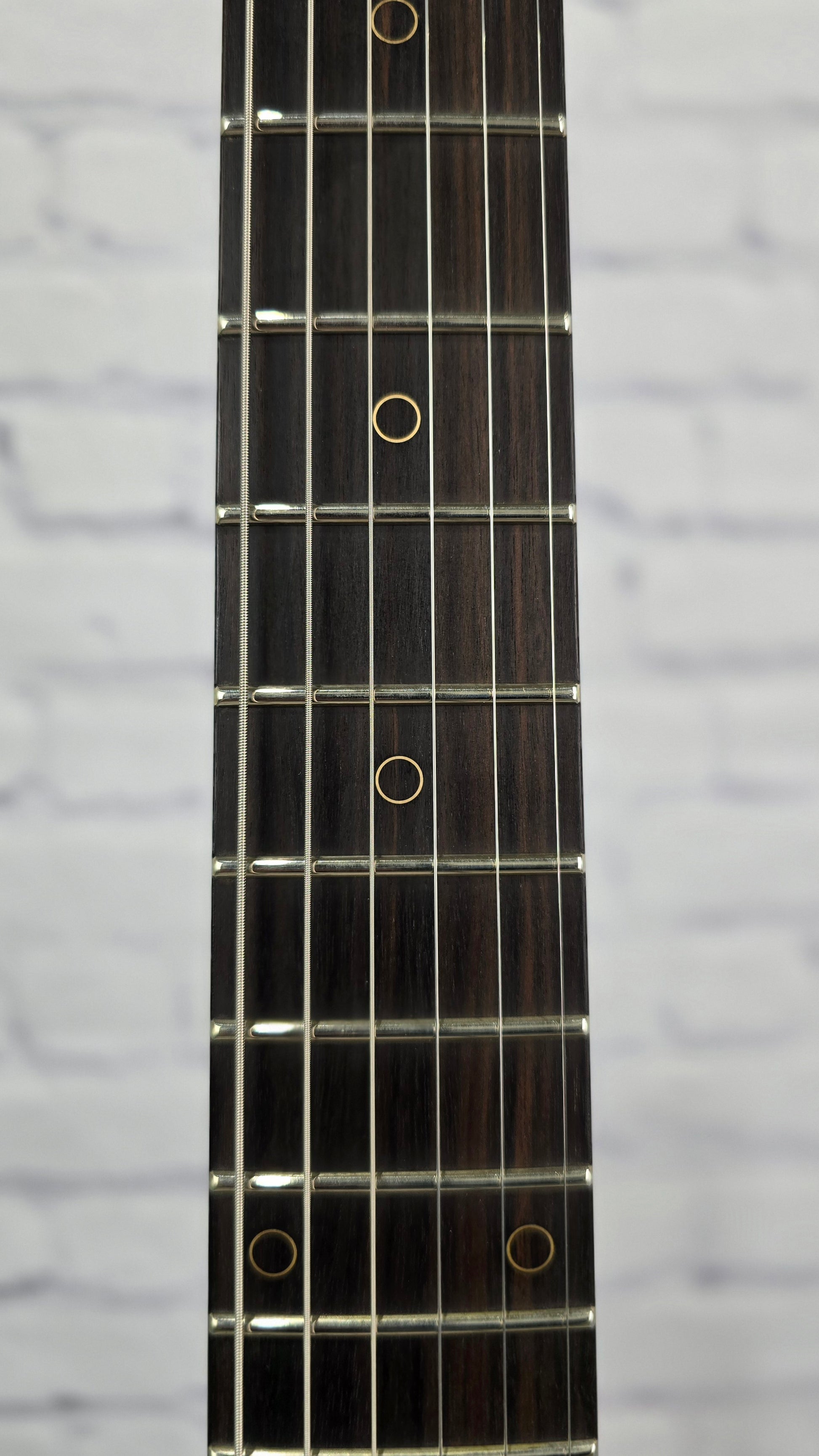 Nick Johnston burst onto the progressive rock scene in the past decade as a young, visionary player who drew on many styles to produce truly innovative sounds and melodic instrumentals. He is known for his incredible neck work, and the Nick Johnston Traditional features a thin C-shaped, roasted maple neck that is ideal for exploring the type of aggressive artistry Johnston has become known for. The ebony fingerboard with 22 extra-jumbo frets produces wonderful intonation and is smooth and responsive. And really cool brass circle fingerboard inlays add an enticing visual to this already stunning neck.