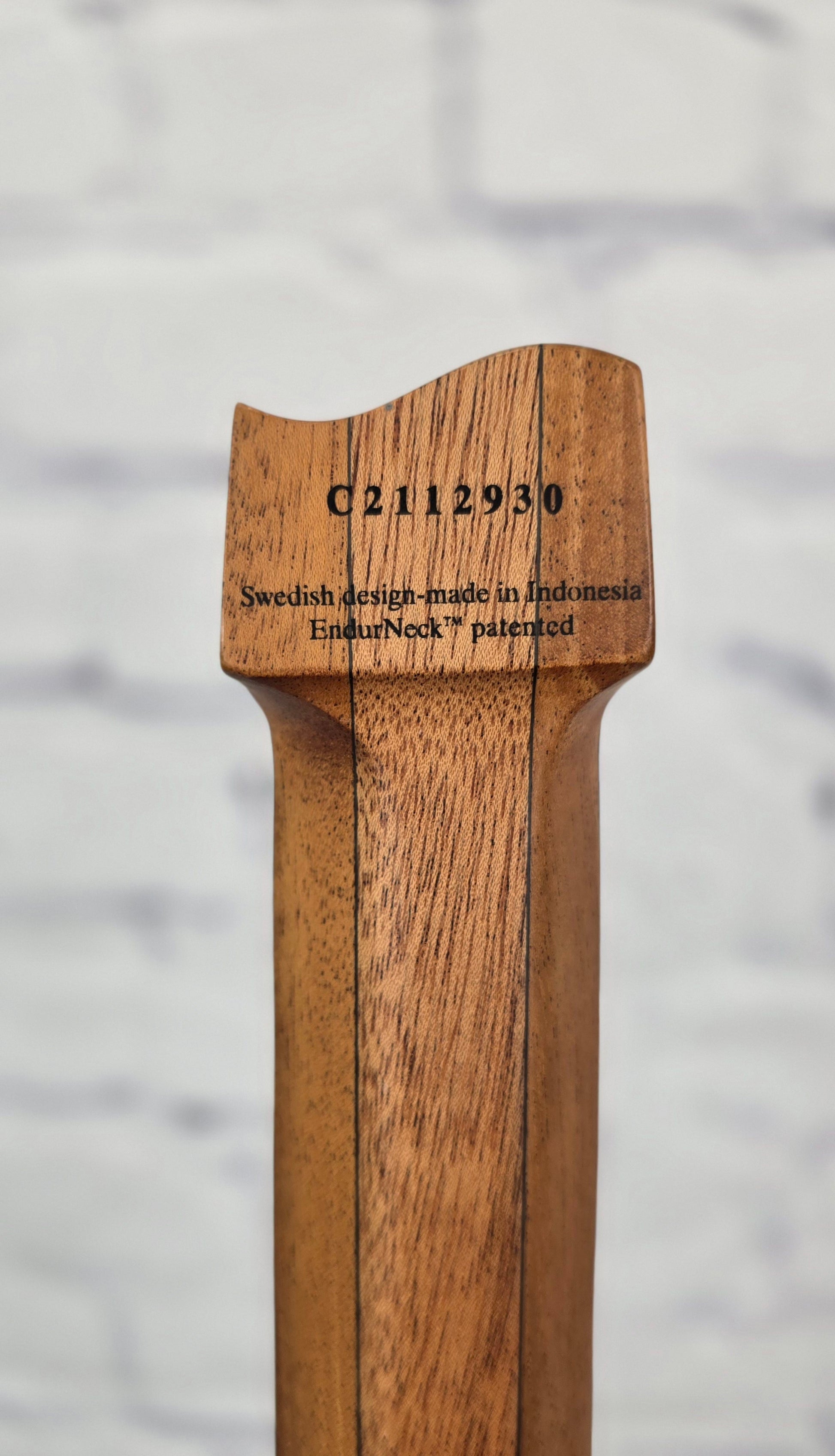 A new modern classic, the Sälen, incorporating most of the features in the original Boden design with an undeniable tip-of-the-cap to a classic solidbody design that has stood strong for nearly seven decades, now features the NX updates that have been successfully implemented to the Boden line. A thoughtful synthesis of the retro-classic and cutting-edge innovation, the Sälen is at once familiar and unabashedly forward-looking. Classic tonewoods and construction techniques with modern design and radical features meld cohesively into a seamless whole.