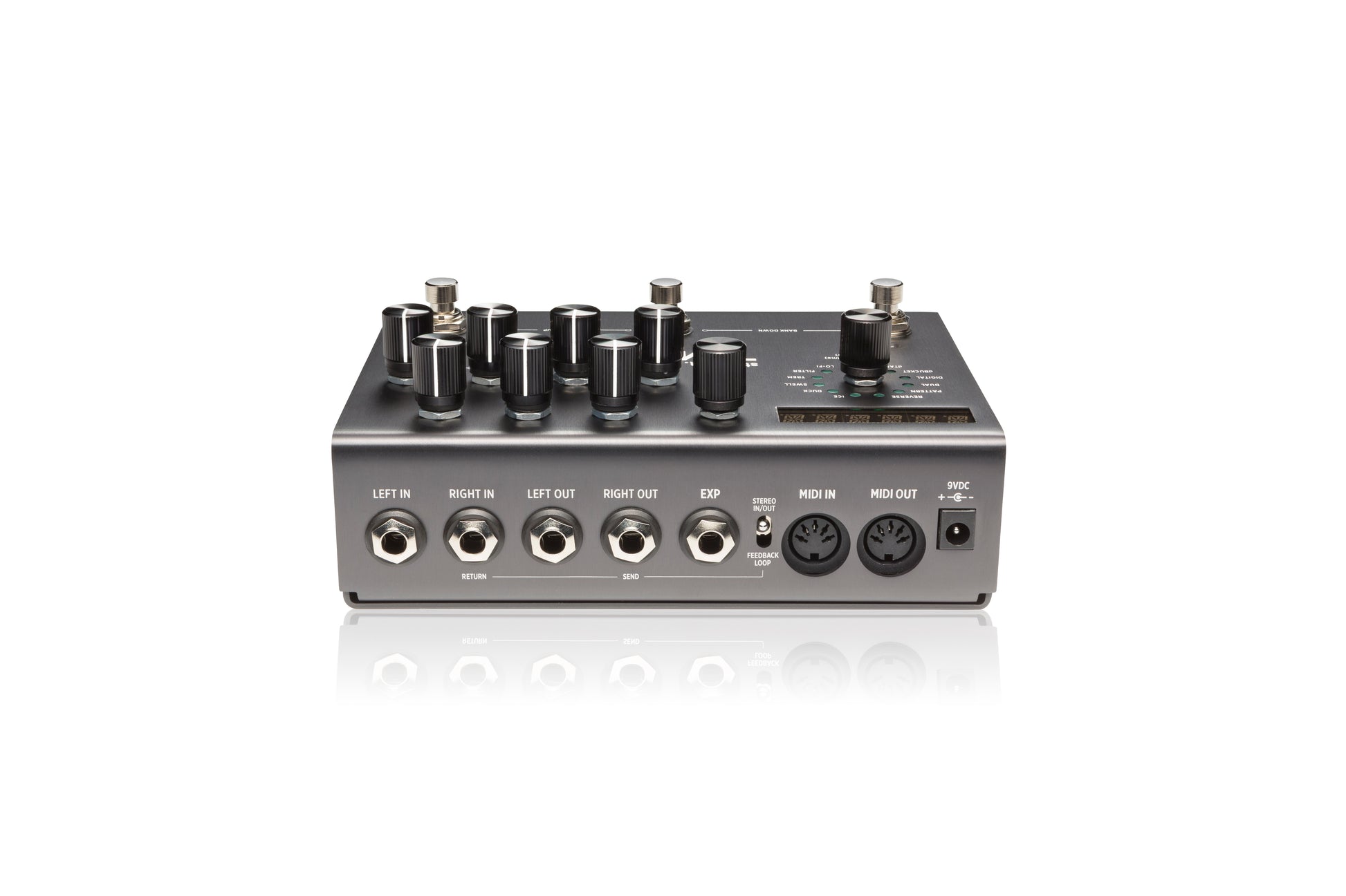 - Three rugged metal footswitches for preset selection, effect bypass, looper control, and Tap Tempo