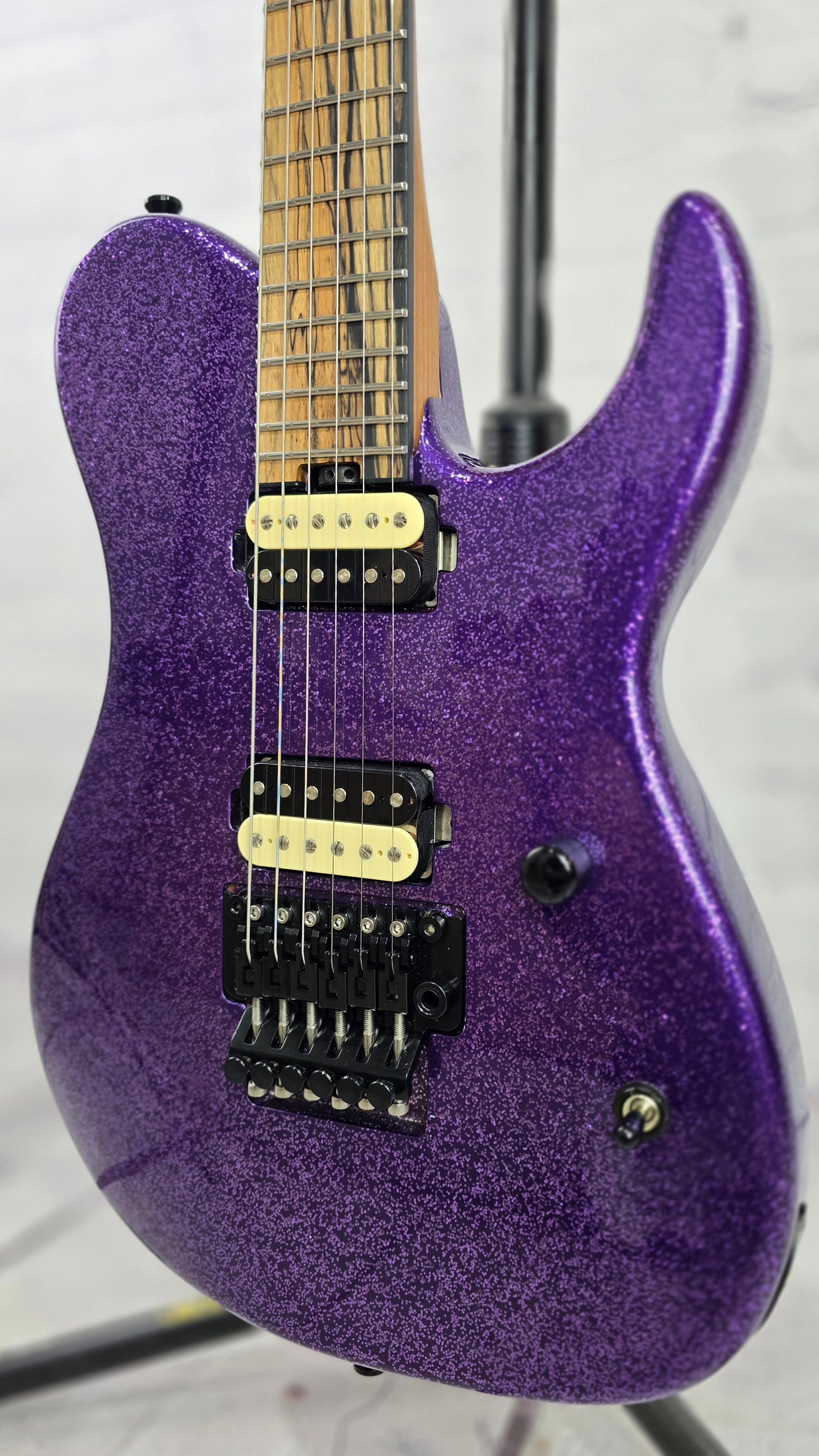 The 624T PME is inspired by a legendary USA Custom Series build that’s currently living with the wonderful Perfecto De Castro. Everyone loves Pale Moon Ebony, and we’ve even upped the ante for this Conspiracy Series version by including a veneer on the headstock as well. The 624T is a fast, acoustically resonant tone machine that covers all the ground you need and then some. Throw on a Floyd Rose (hot-rodded 1500 style!) and the iconic Pop Life Sparkle finish, and you’ve got yourself a real head-turner that brings the heat when it counts.