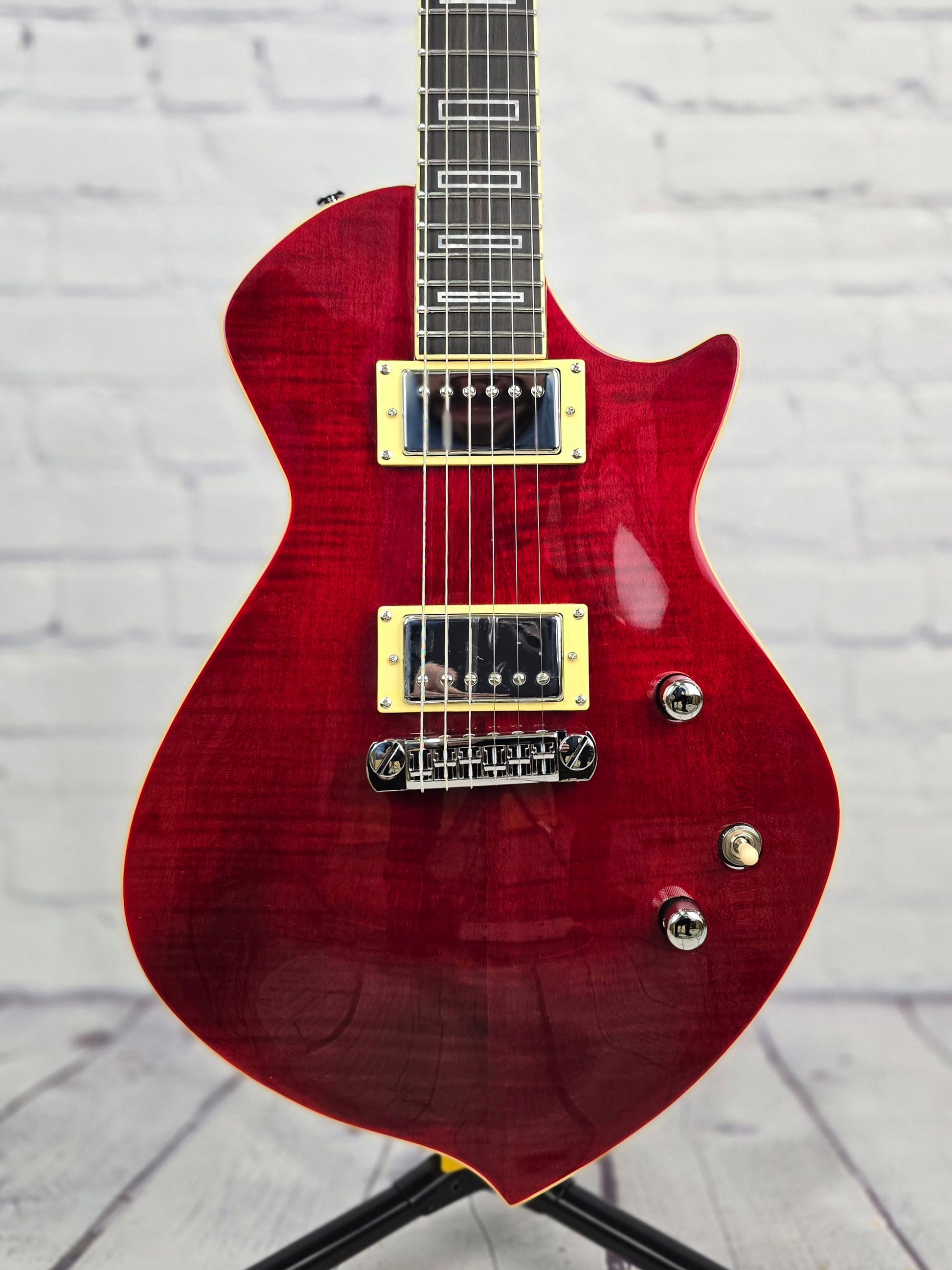 Body wood: Mahogany/flame maple with binding