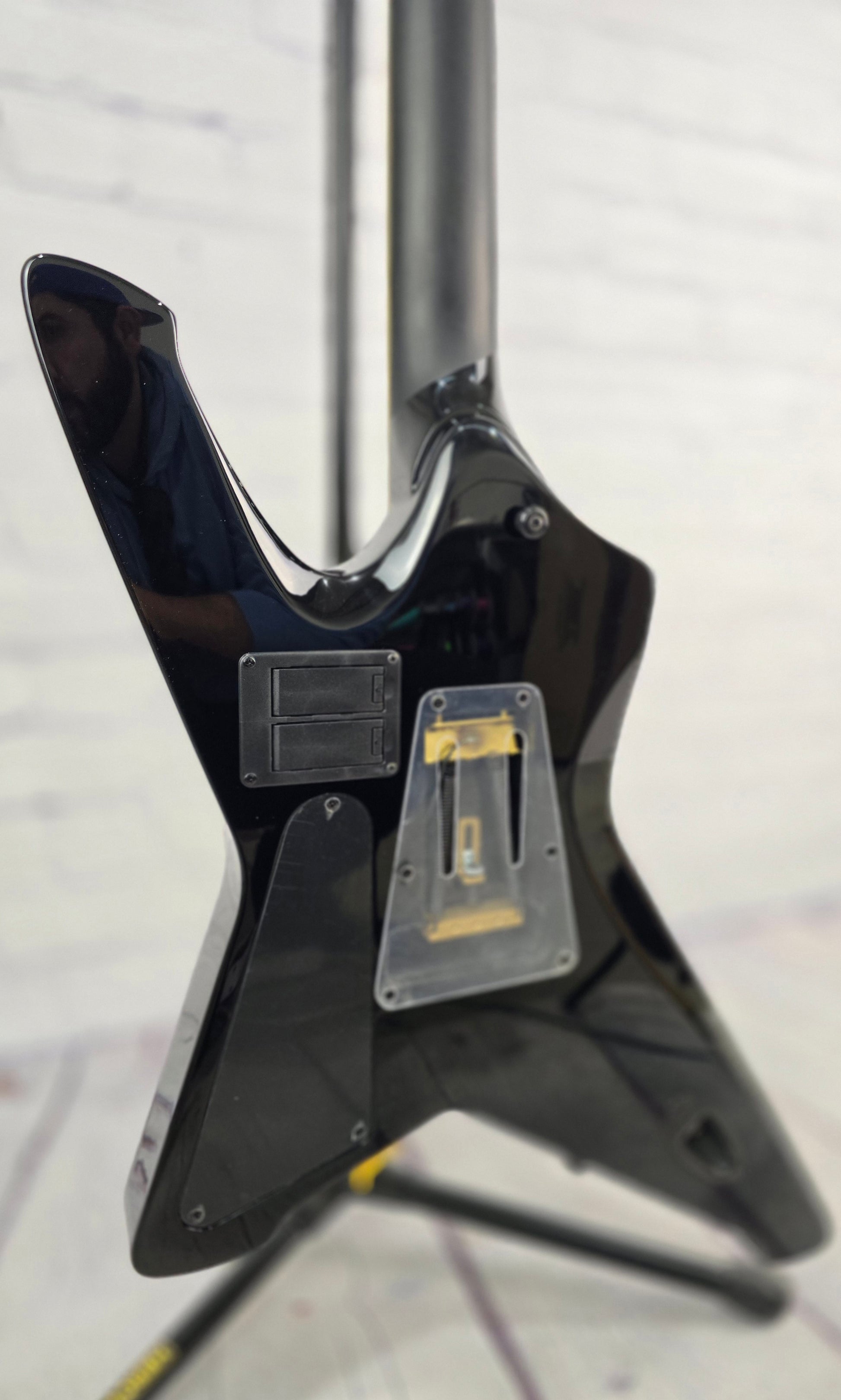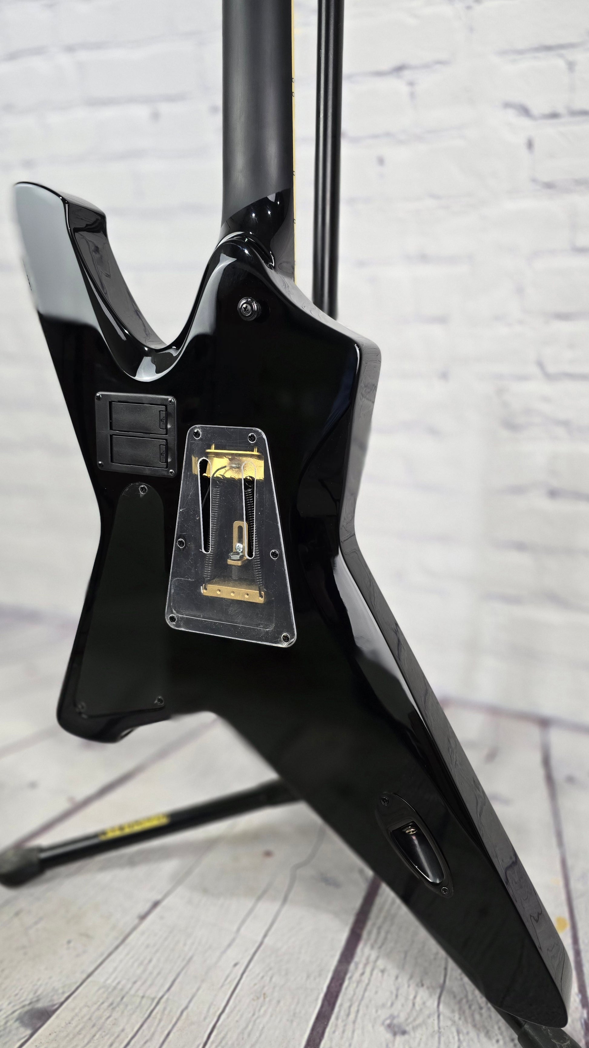 Output jack: Strat style on back of long wing