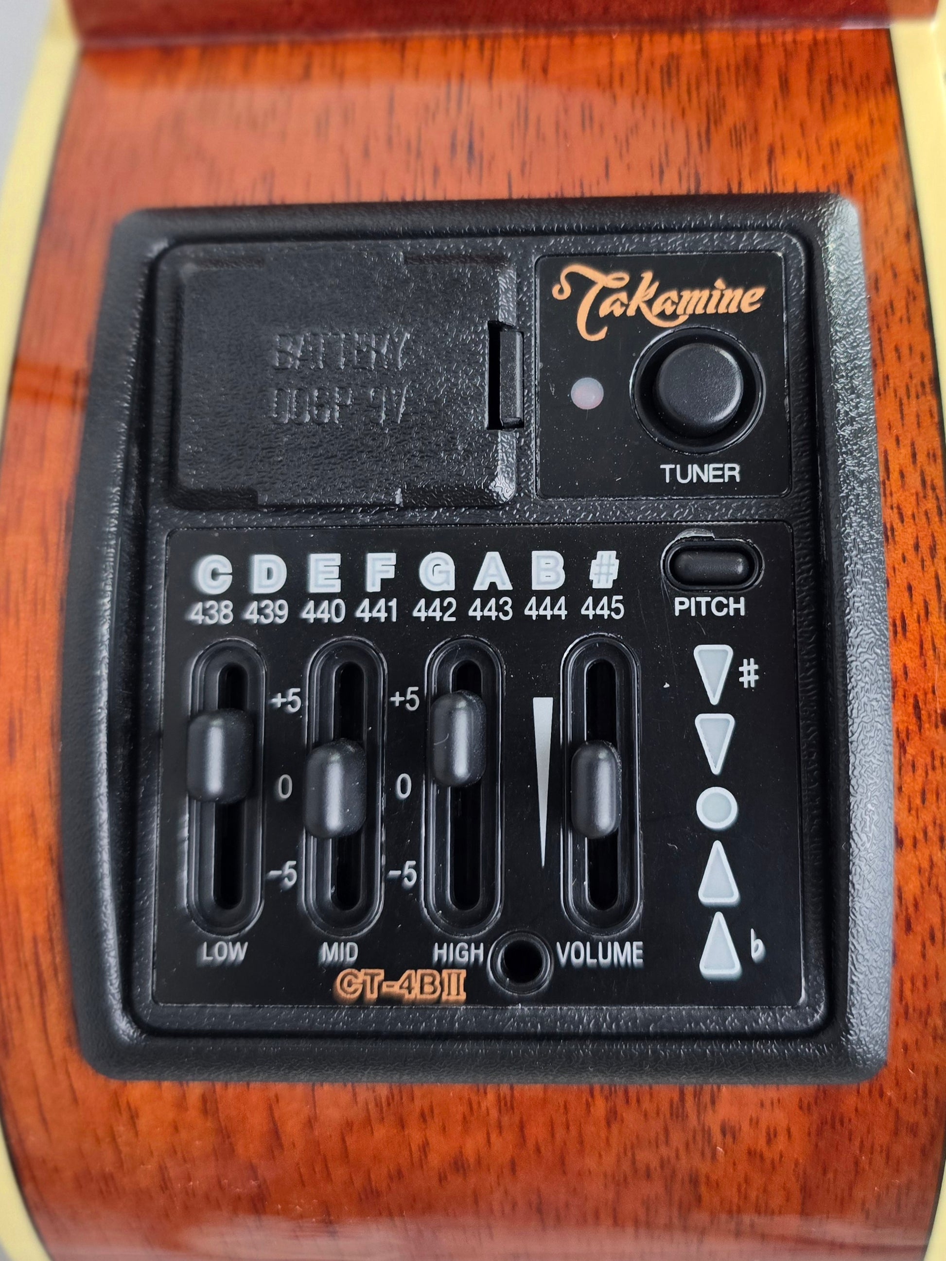 Includes Takamine’s CT4B II preamp system paired with the unique Palathetic™ under-saddle pickup for peerless amplified response. The highly acclaimed CT4B II preamp system with three-band EQ, volume control and built-in tuner.