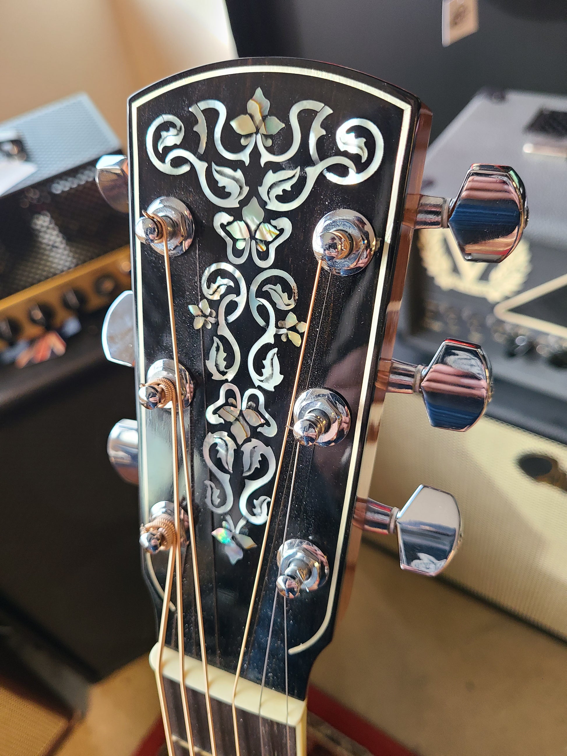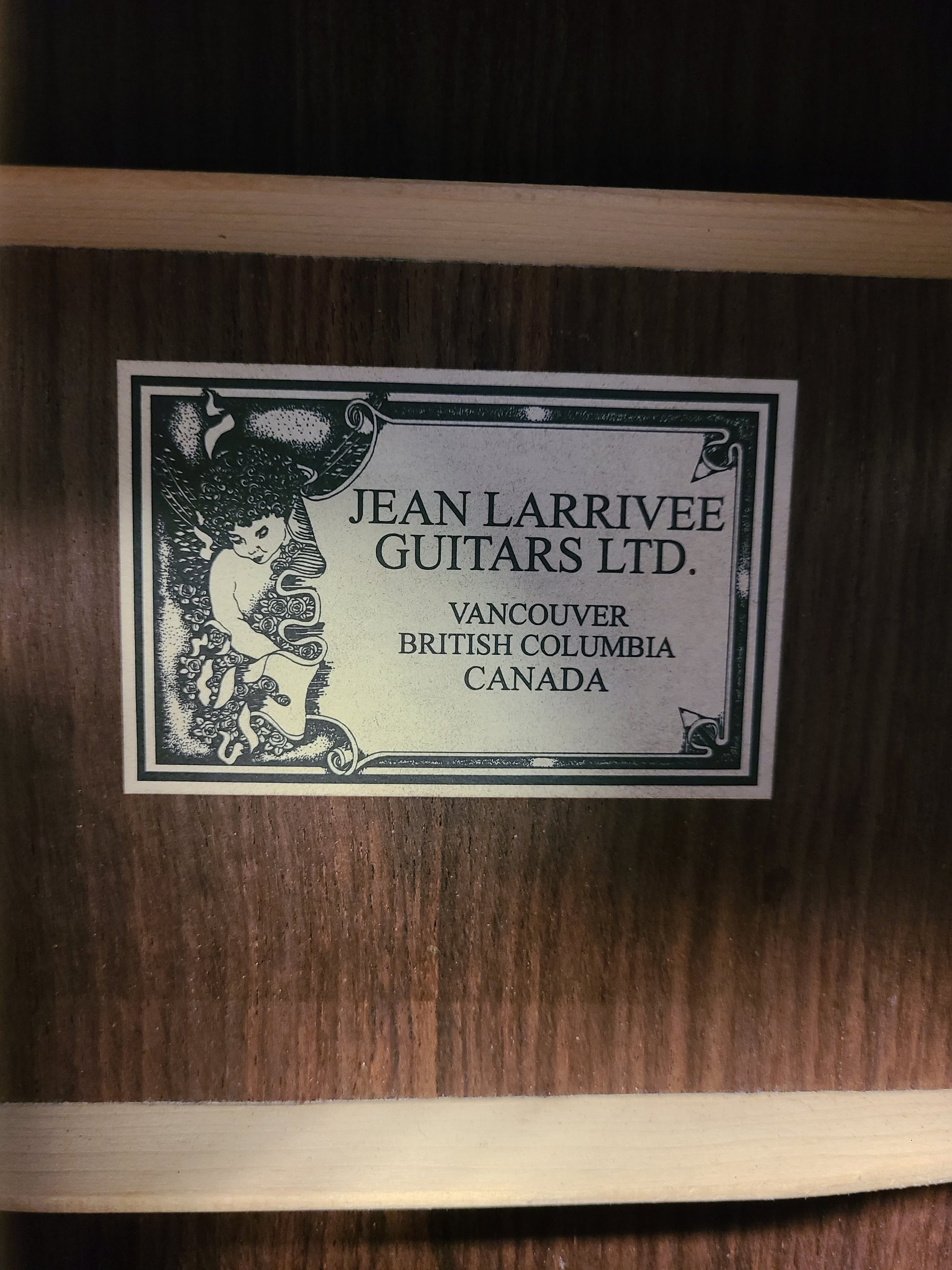 The inlay work (which Larrivee has been known for) is simply exceptional and they high gloss finish is still mirror-like. This is a serious guitar for collectors or players alike. It comes with original hardshell archtop style case.