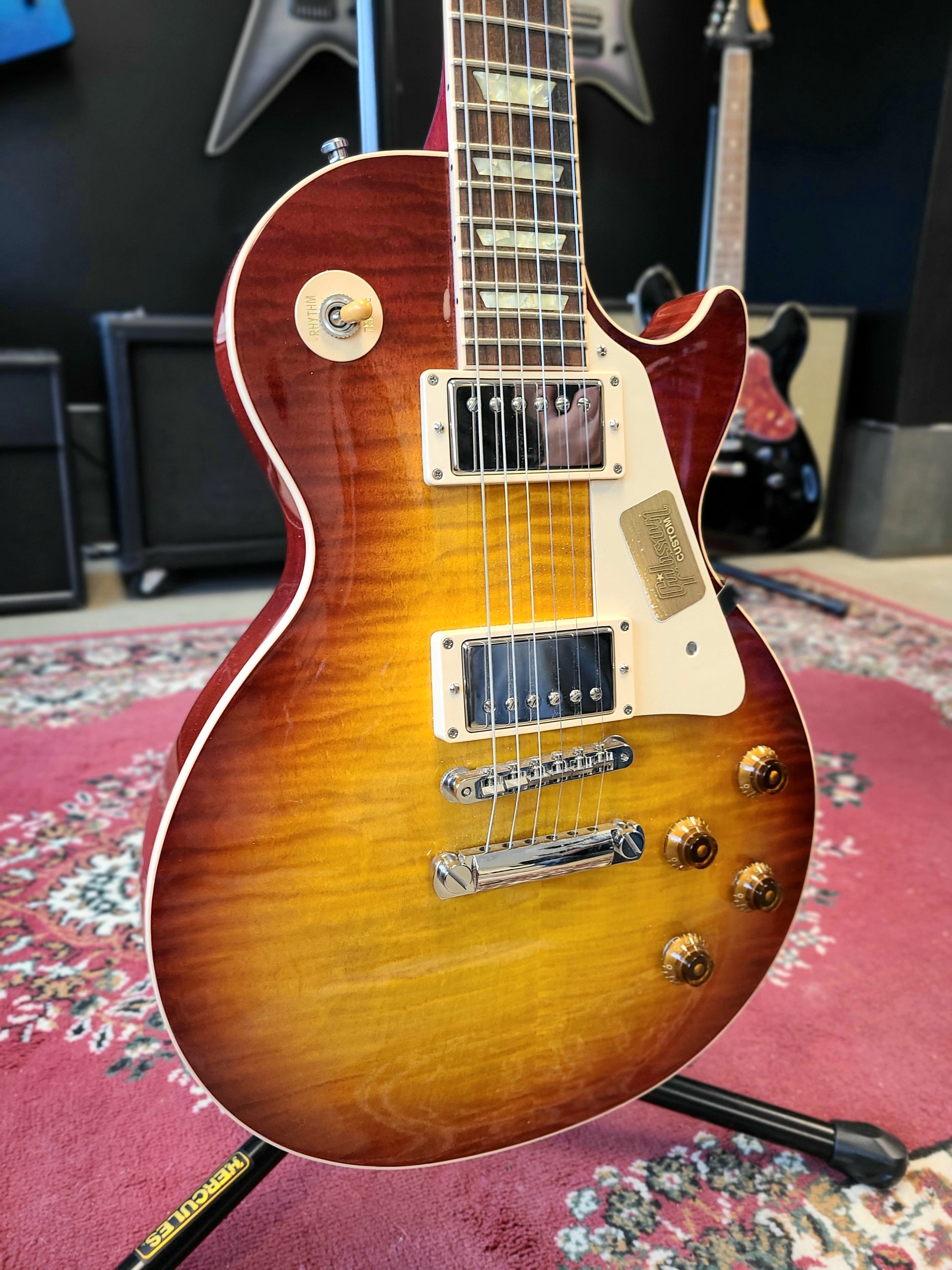 The electric guitar has loads of natural sustain from the weight-relieved mahogany back and set mahogany neck with long tenon is accentuated by the Gibson Burstbucker pickups. Comes with Gibson CS case and COA.