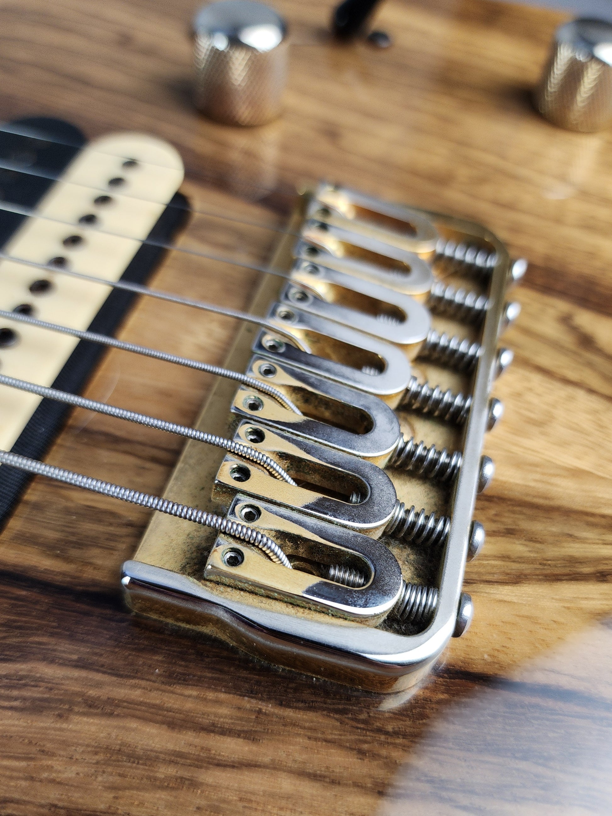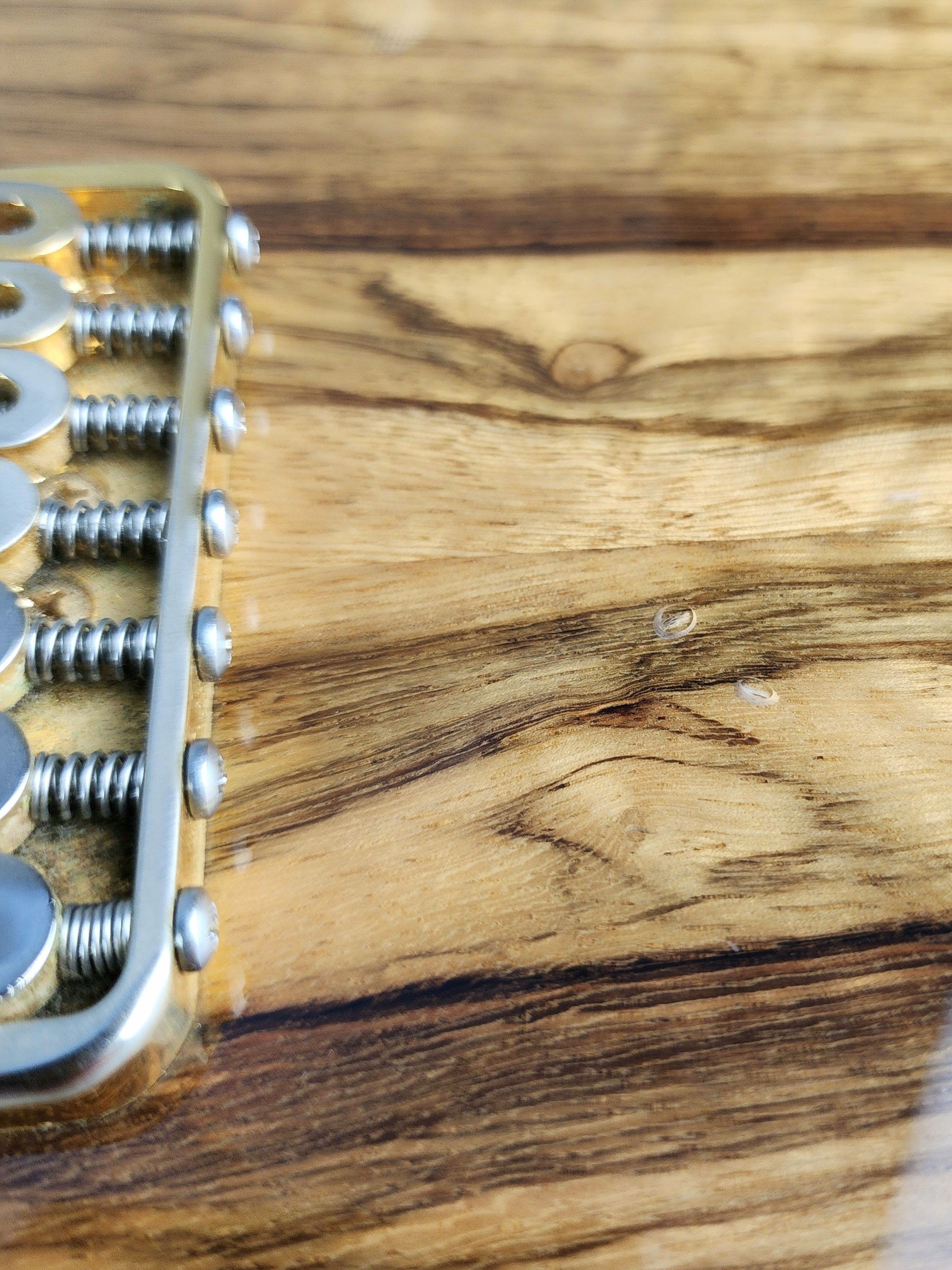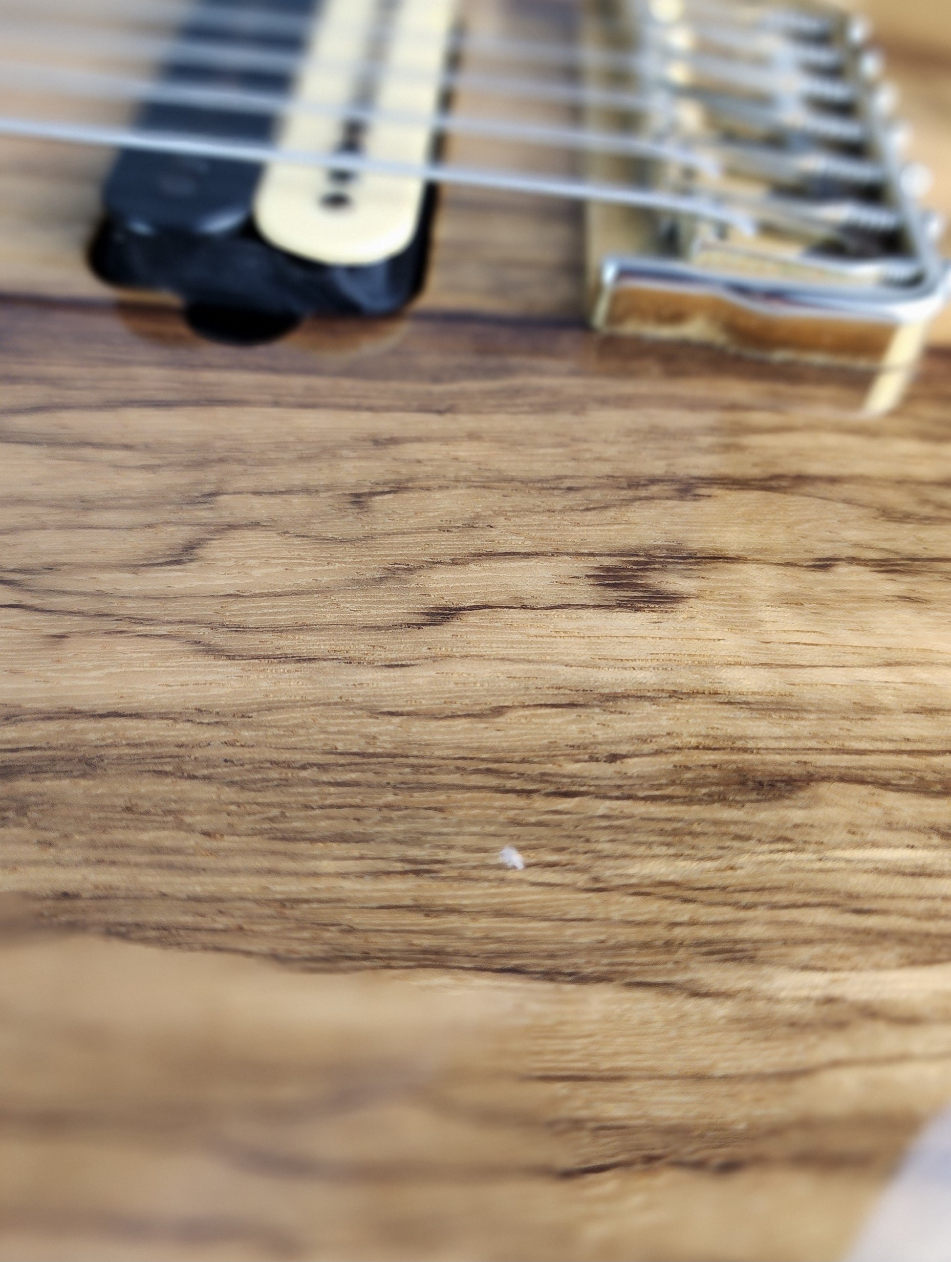It does show some signs of wear on the gold Hipshot bridge finish, as well as some small dents/impressions on the surface of the guitar. These are shown in the photos - all quite minor and difficult to photograph.