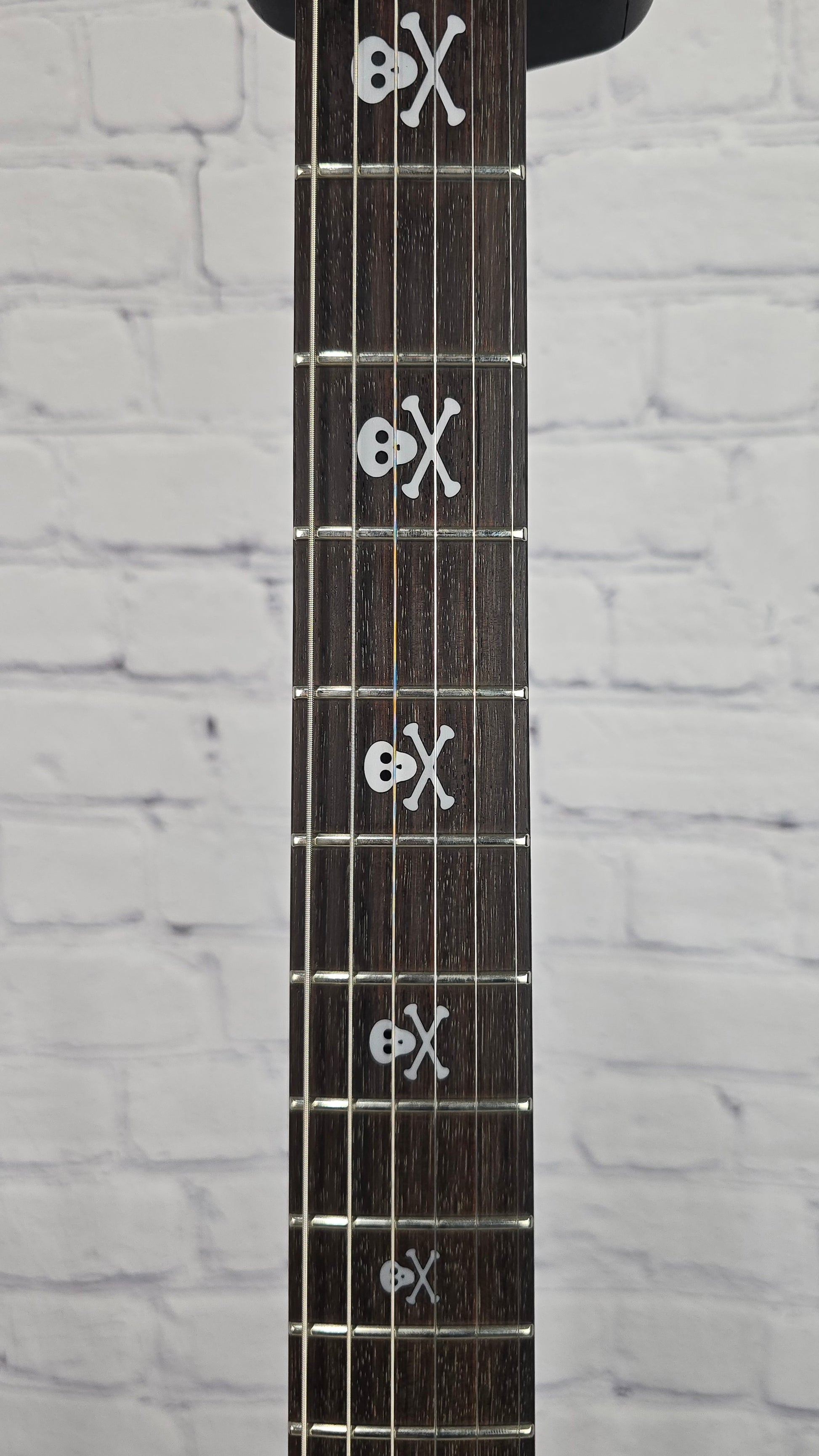 The KH-2 NTB has a 305mm radius rosewood fingerboard with 24 extra-jumbo frets and Kirk's signature “skull and bones” inlays. This guitar’s sound is powered by a pair of EMG 81 pickup (later changed to 81/85 and then KN Bone Breakers). Designed to bring out the best in Kirk’s tone, the pickups offer crisp leads or smooth, rounded rhythm tones at a flick of its three-way selector switch. Components on the KH-2 NTB include high-quality Gotoh tuners and a Floyd Rose Original bridge, and it comes with an ESP hard shell case.