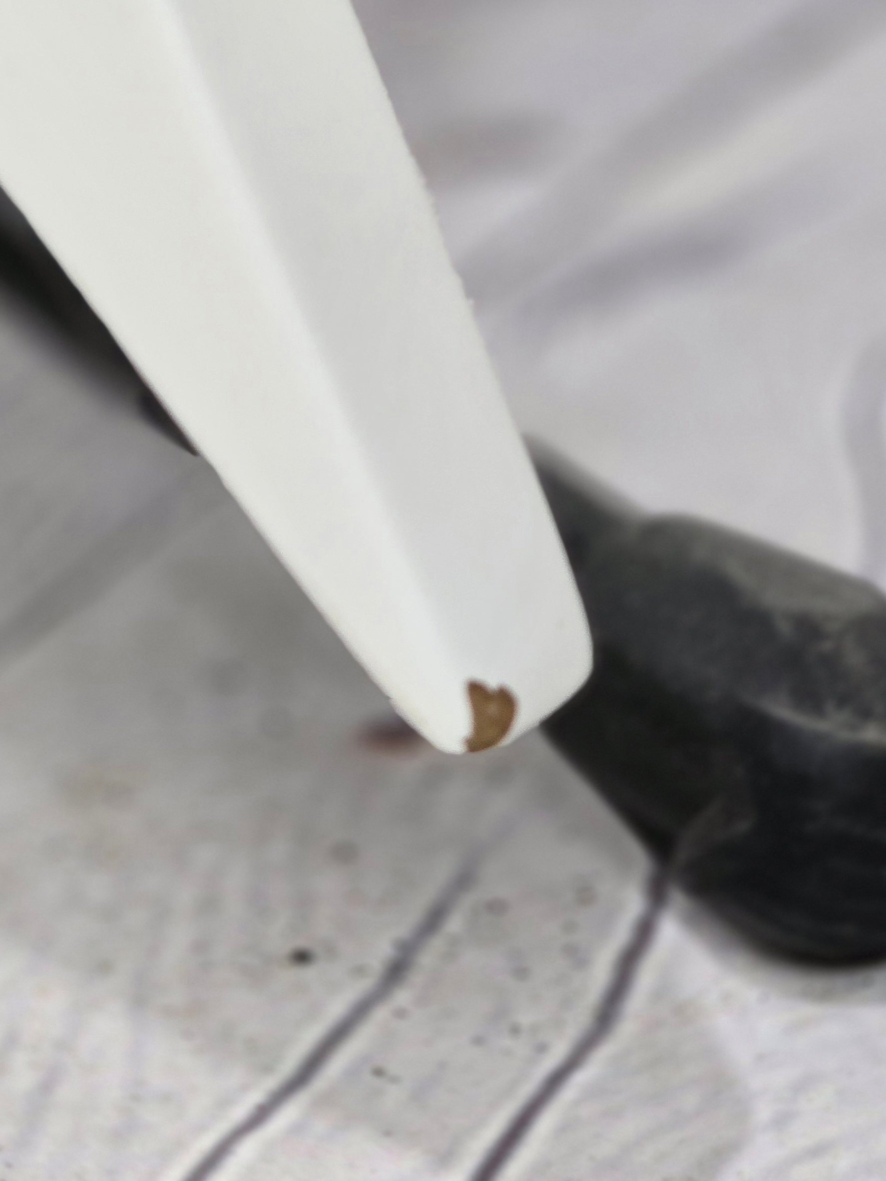 Just in @ Guitar Brando, rare and killer LTD Alexi-600 Scythe in Gloss White. This particular guitar is Korean built in 2009 and shows some signs of play and some average wear for the age of the guitar. The white has some signs of shifting to a slightly off-white in certain spots. The bridge hardware shows some tarnish and the bridge pickup has been swapped at some point to a passive EVH zebra humbucker (which sounds great). There is a small impression on the top of the guitar in one of the black stripes and there is one small chip on the longer horn on the side of the guitar body.