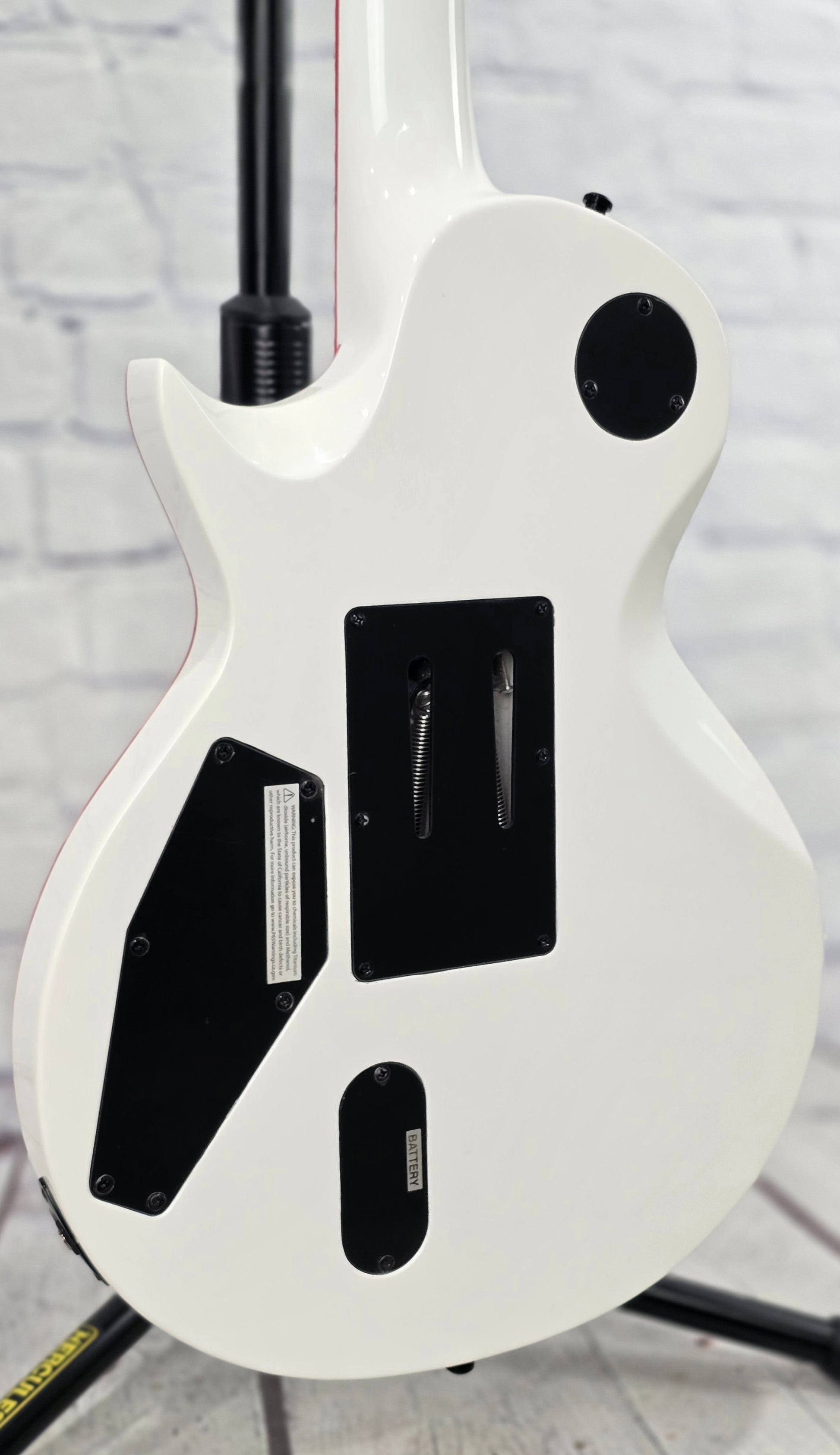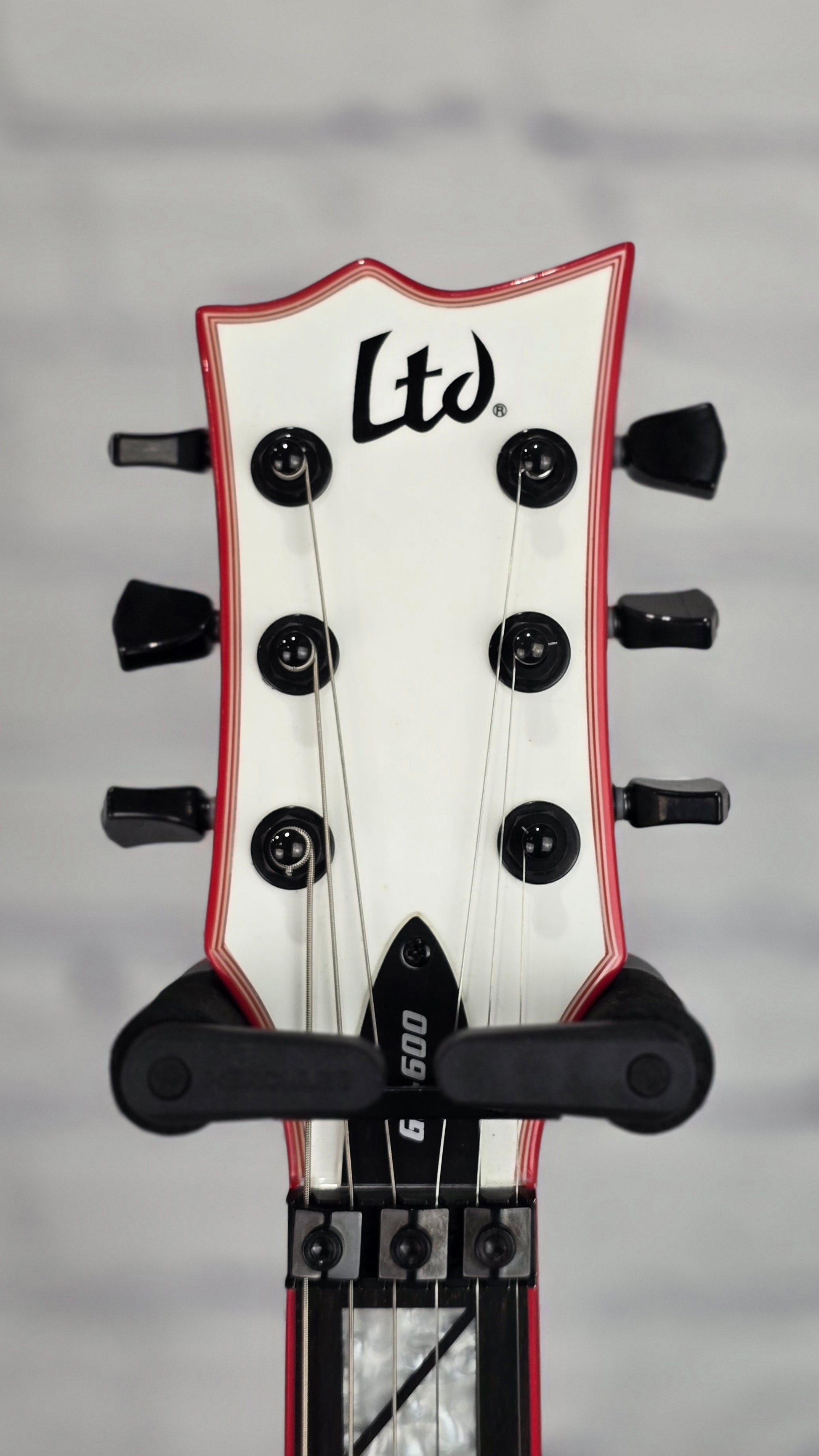 Just in @ Guitar Brando - very clean 2019 LTD GH-600 Gary Holt Signature Eclipse in Snow White, with vibrant red binding and match EMG pickups. This guitar is in excellent condition, with only some very minor swirl in the clear coat showing any evidence this has been played. Floyd Rose functions perfectly, EMGs sound beautiful - this is as tidy as you'll find in the used market.