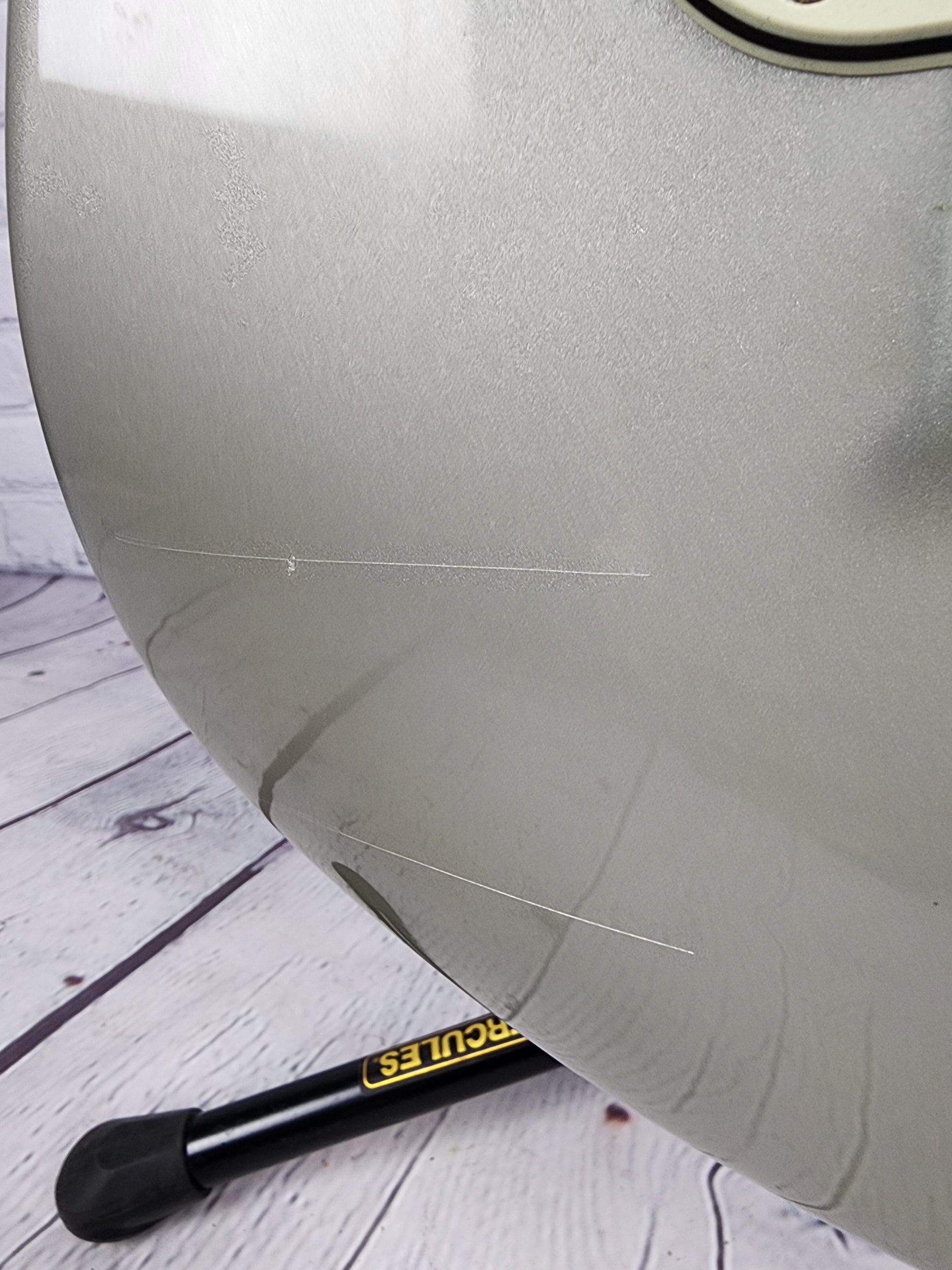 Just in @ Guitar Brando, this is a pretty cool Fender Custom Shop Stratocaster Deluxe in Inca Silver. Built in 2009, this model has been played, but was used as a touring guitar by an artist, so comes with some big league mojo built-in. Make no exception, this is a bit of a player's grade Strat - it does have some dings and dents, along with some nitro checking, but frets are in great shape with lots of life left. If you are into the CS relic thing, this is a naturally aged model that really provides a great example of a modern Strat with some vintage vibes.