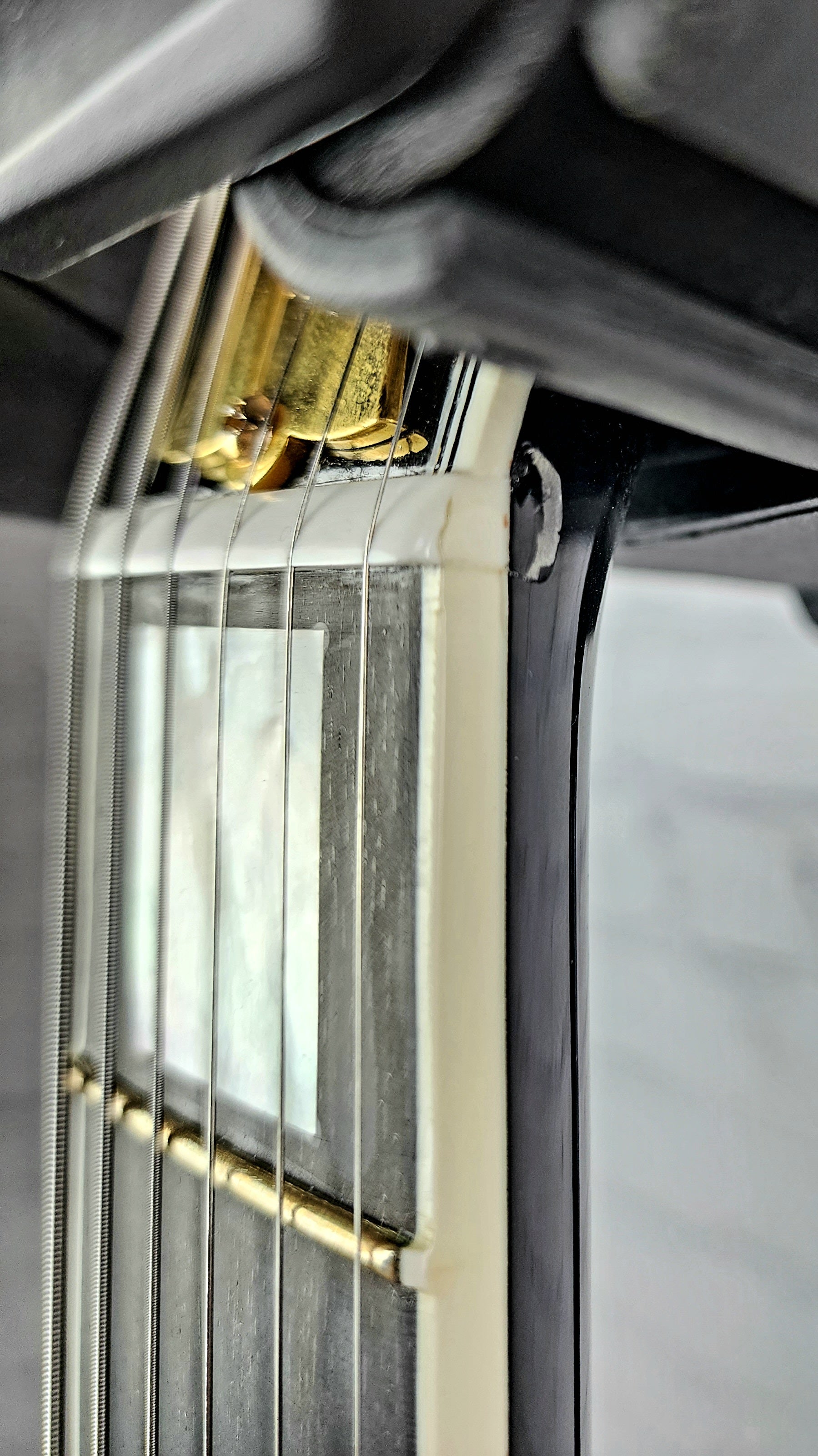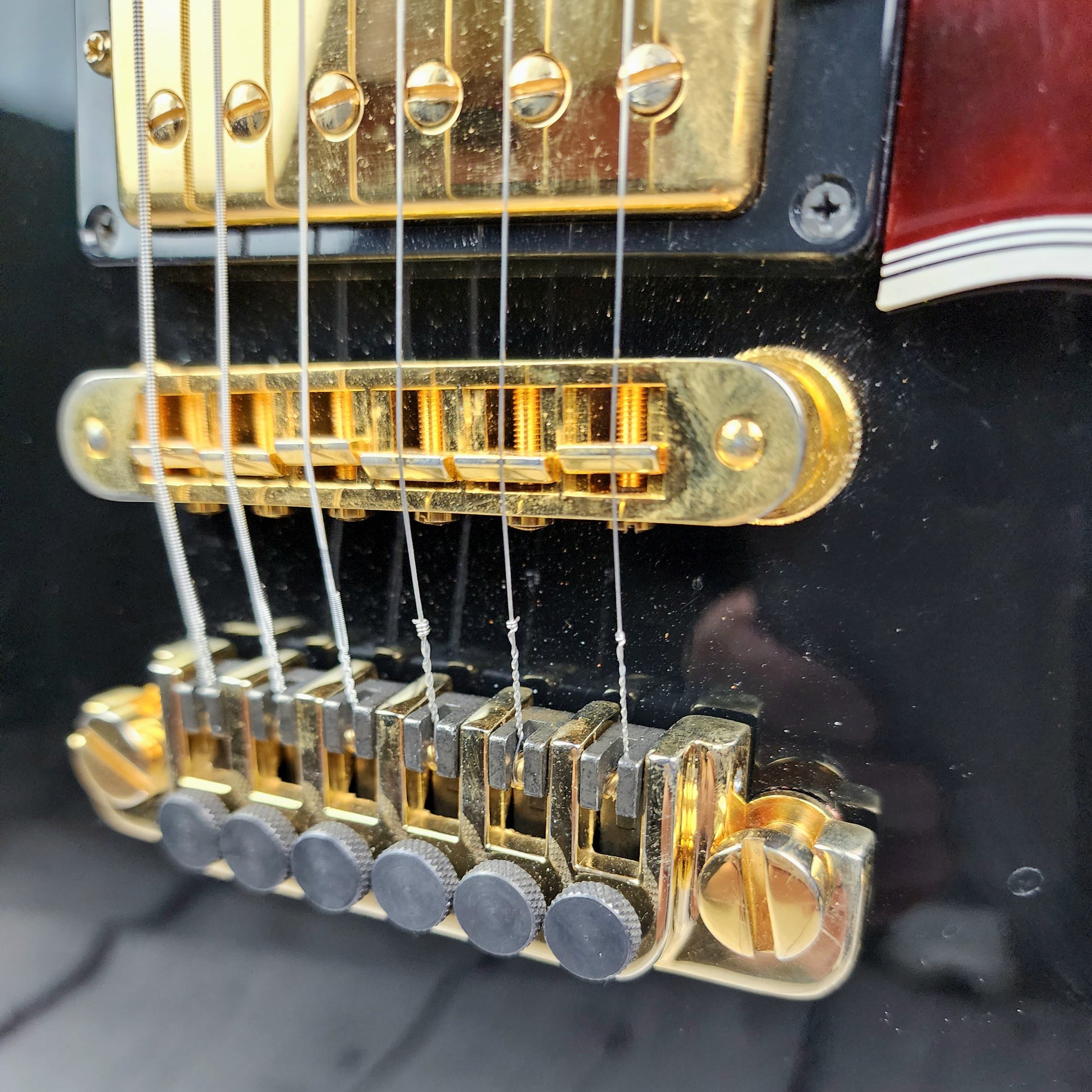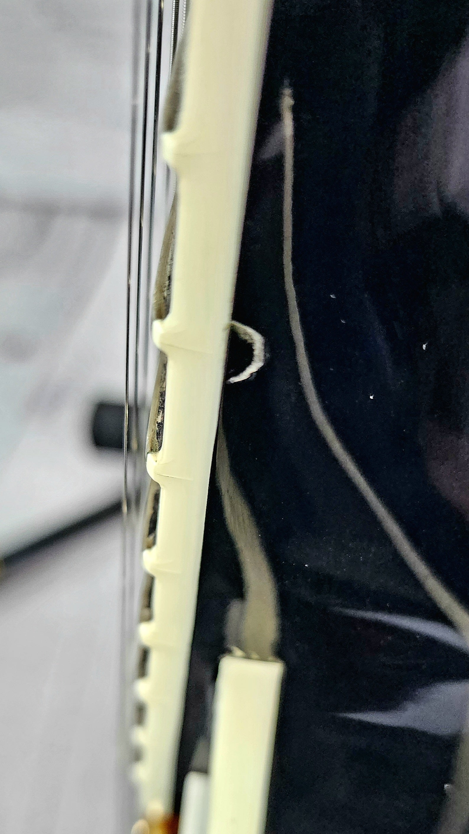 A very fine example of a rare and collectible Gibson B.B. King Lucille in gloss black. Built in Memphis in 2007, this guitar is completely stock and overall shows clean, though does have several spots where the binding has pushed clear coat up along the neck (shown in photos). These are clear coat lifting and not impact dings. Gold hardware shows nicely, but has minor tarnish, as expected for a 15yr old guitar. In general, this is a very nice, quality instrument and needs nothing. Inspected and setup in-house before shipping.