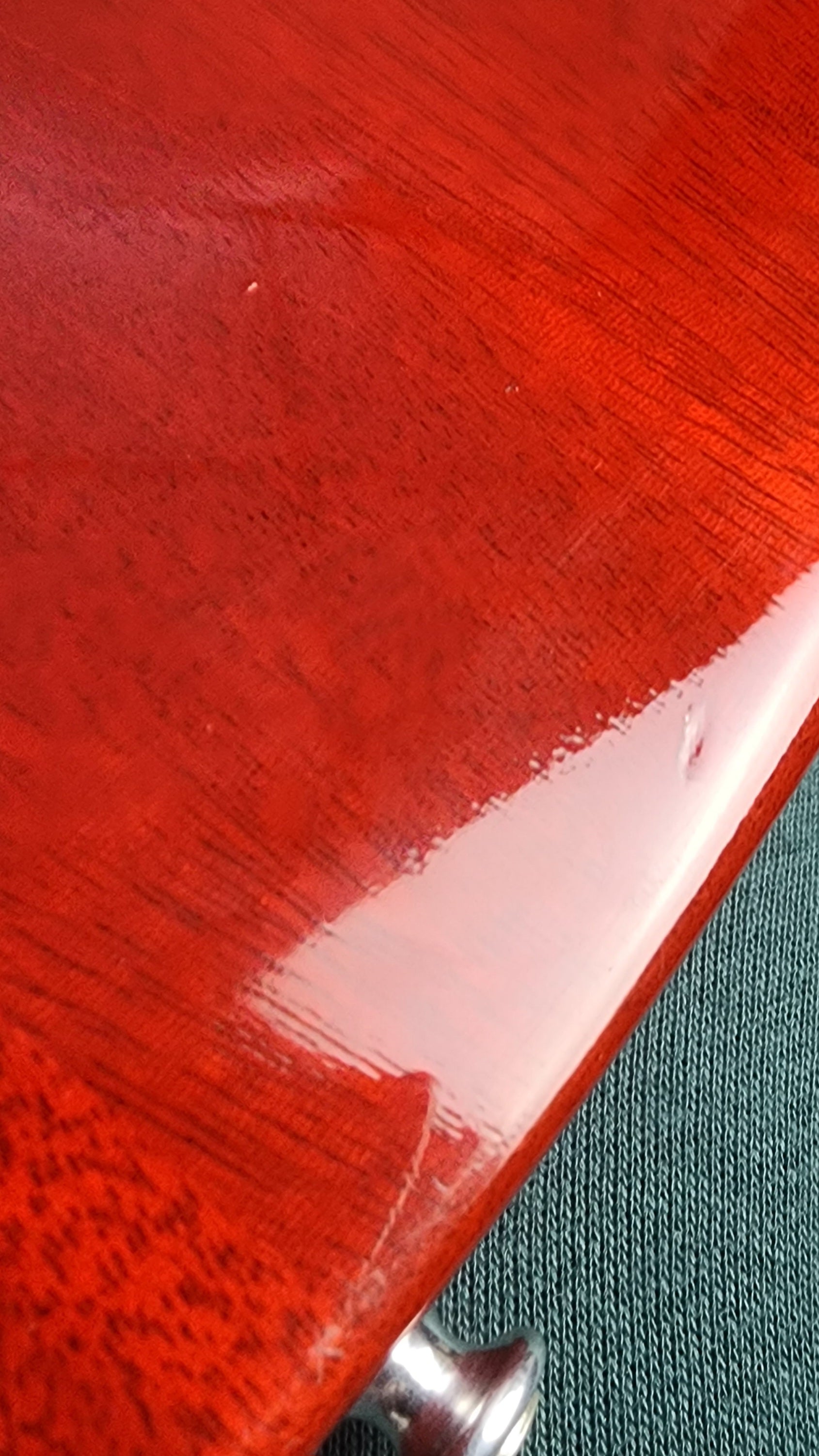 Condition on this is Reverb "Very Good" with some dings and marks present on the body of the guitar and some nitro finish checking on the back of the neck. Photos detail these imperfections. Frets are solid and the setup is nice and playable.