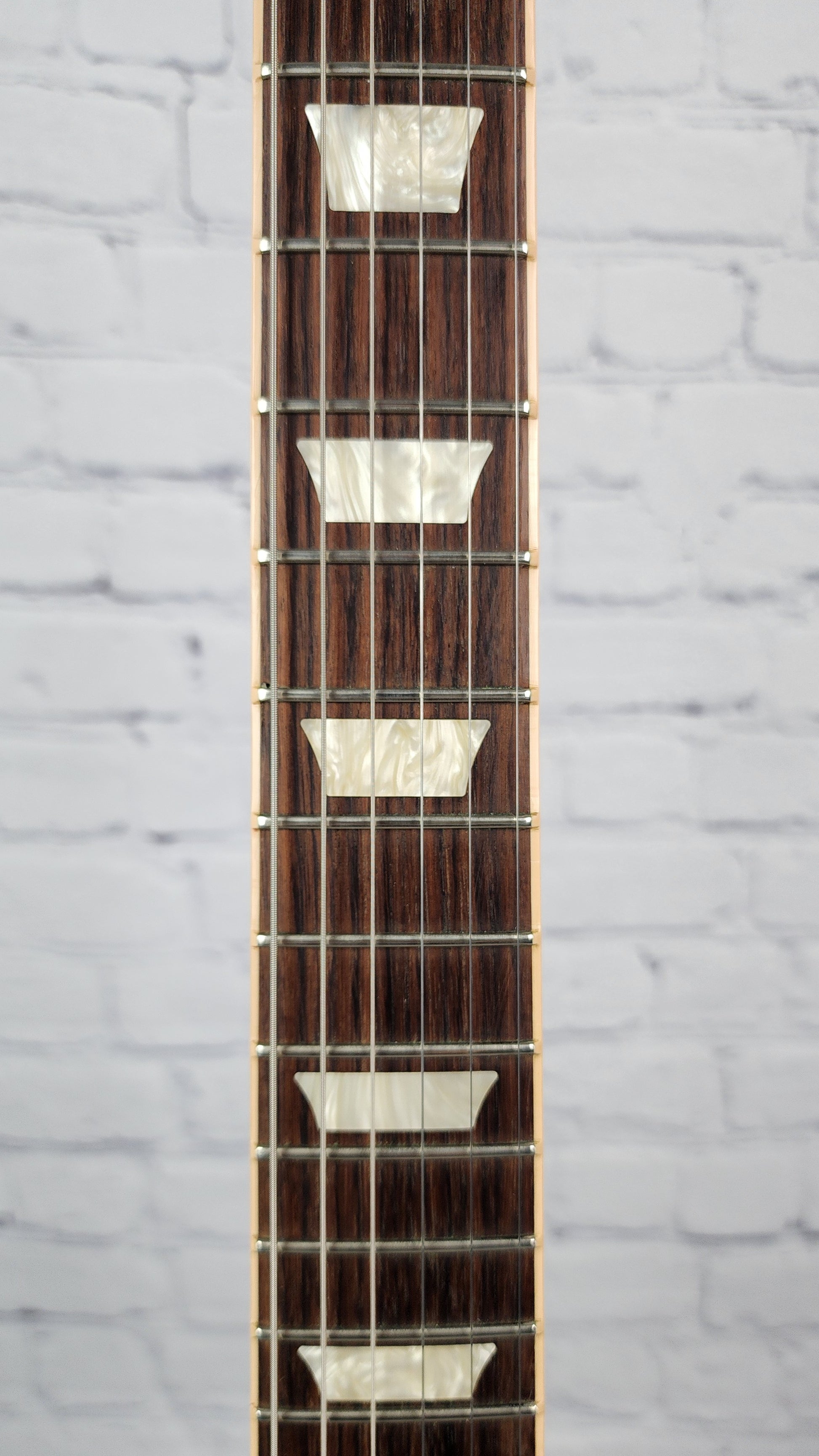 Guitar has has the stock pickups removed and replaces with humbucker sized P-94 single coil pickups. This comes with a newer-style chainsaw TSA latching case.