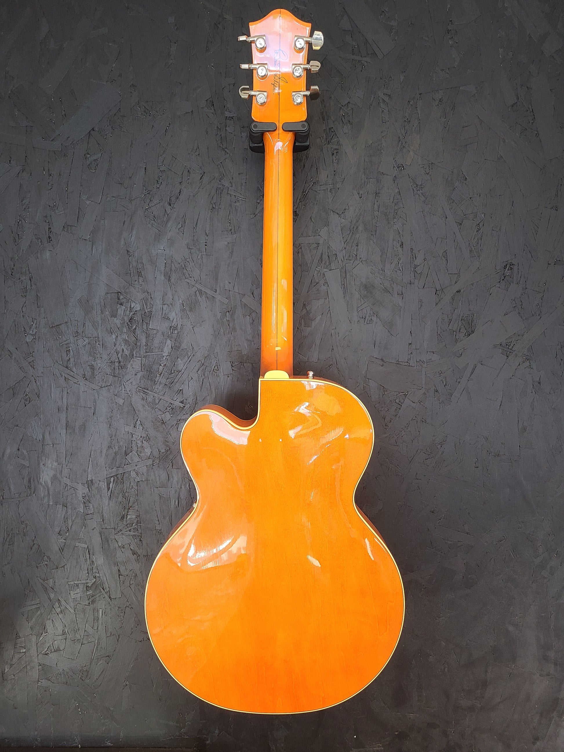 Smoke is a true workhorse with features accumulated over a prolific span of Brian’s career. Stage-veteran specs include a single-cutaway hollow body with arched laminated maple top, 1959 trestle bracing and oversized F-holes for improved sonic projection. The maple neck has a 9.5"-12” compound radius ebony fingerboard and a vintage ‘V’ neck shape for comfortable chording or lightning leads. The rolled fingerboard and body edges couple with the semi-gloss finish to create an unparalleled broken-in feel found only in the prized G6120s from the 1950s.