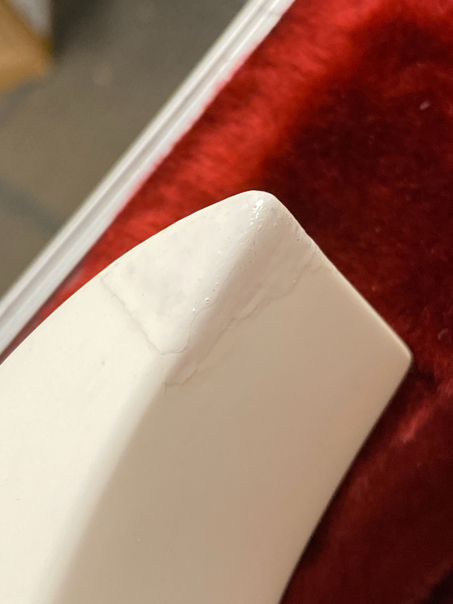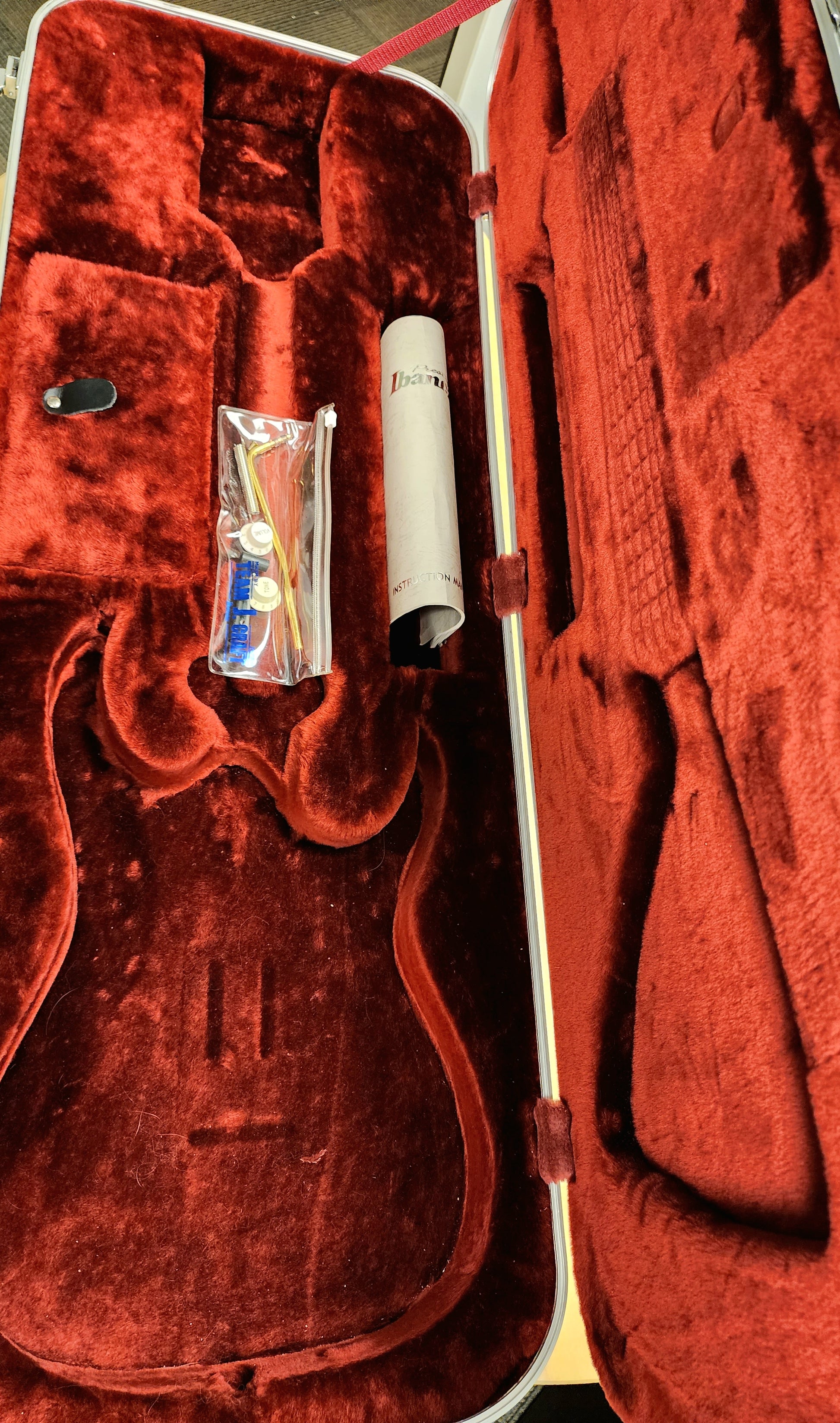 This guitar has been played and does show signs of wear and repair. There is an obvious area where paint has been retouched on the rear side of the lower horn (outlined in the photos), as well as some minor dings/dents that are visible on the upper horn side/edge of body.