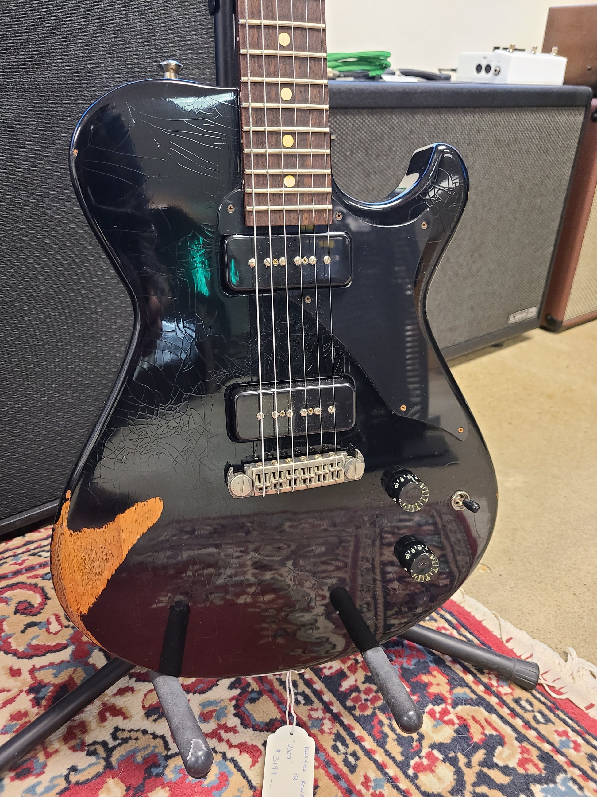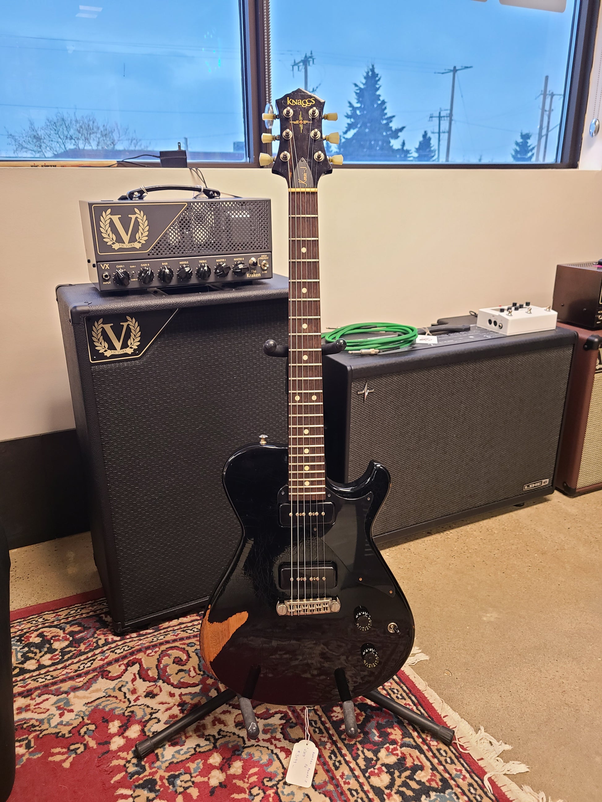 This lovely Knaggs is a shop favorite since it arrived. Made in the USA and oozing boutique quality. Extremely light weight and resonant mahogany neck and body (6.5 lbs). It is a factory relic, so it plays like your favorite worn-in pair of jeans - but it is essentially mint with no added play wear to the frets or additional dings/damage.