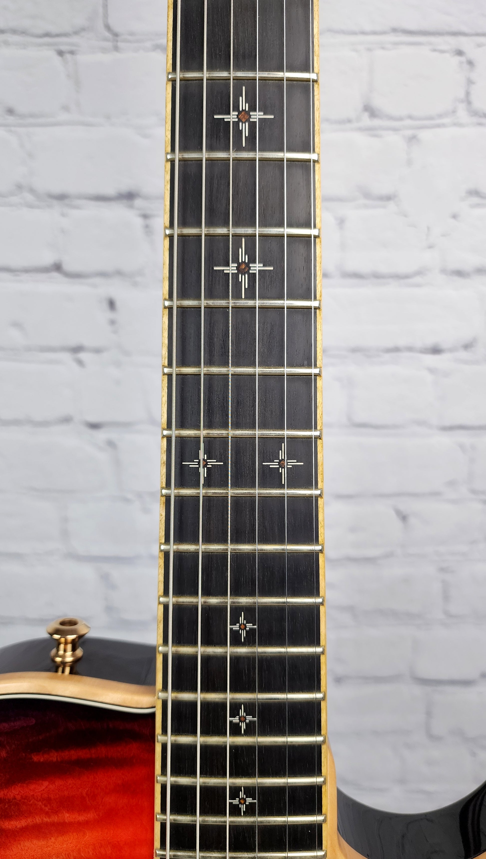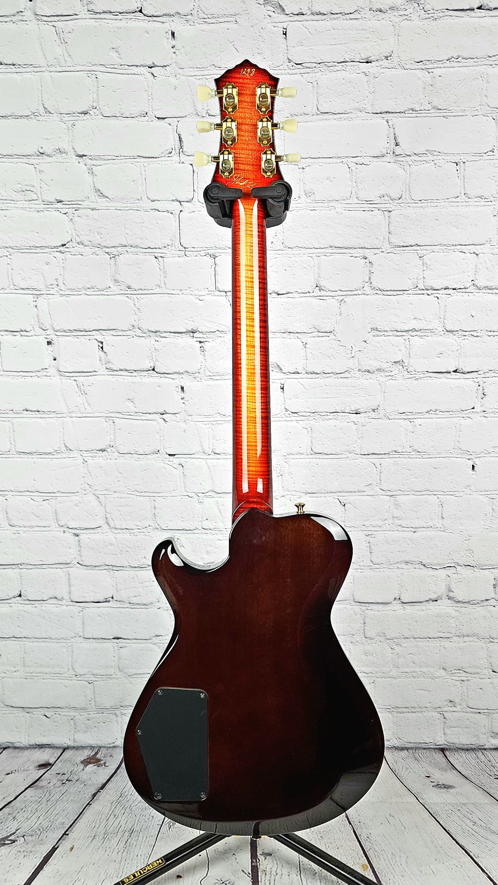 Just in on trade! This is a wonderfully clean example of a 2021 collector grade T1 Kenai with the quilt top option (a rare & very pricey option in 2022). The highly figured curly maple neck is also finished in matching Sunrise Burst and adds to the overall high end feel of this gorgeous instrument.