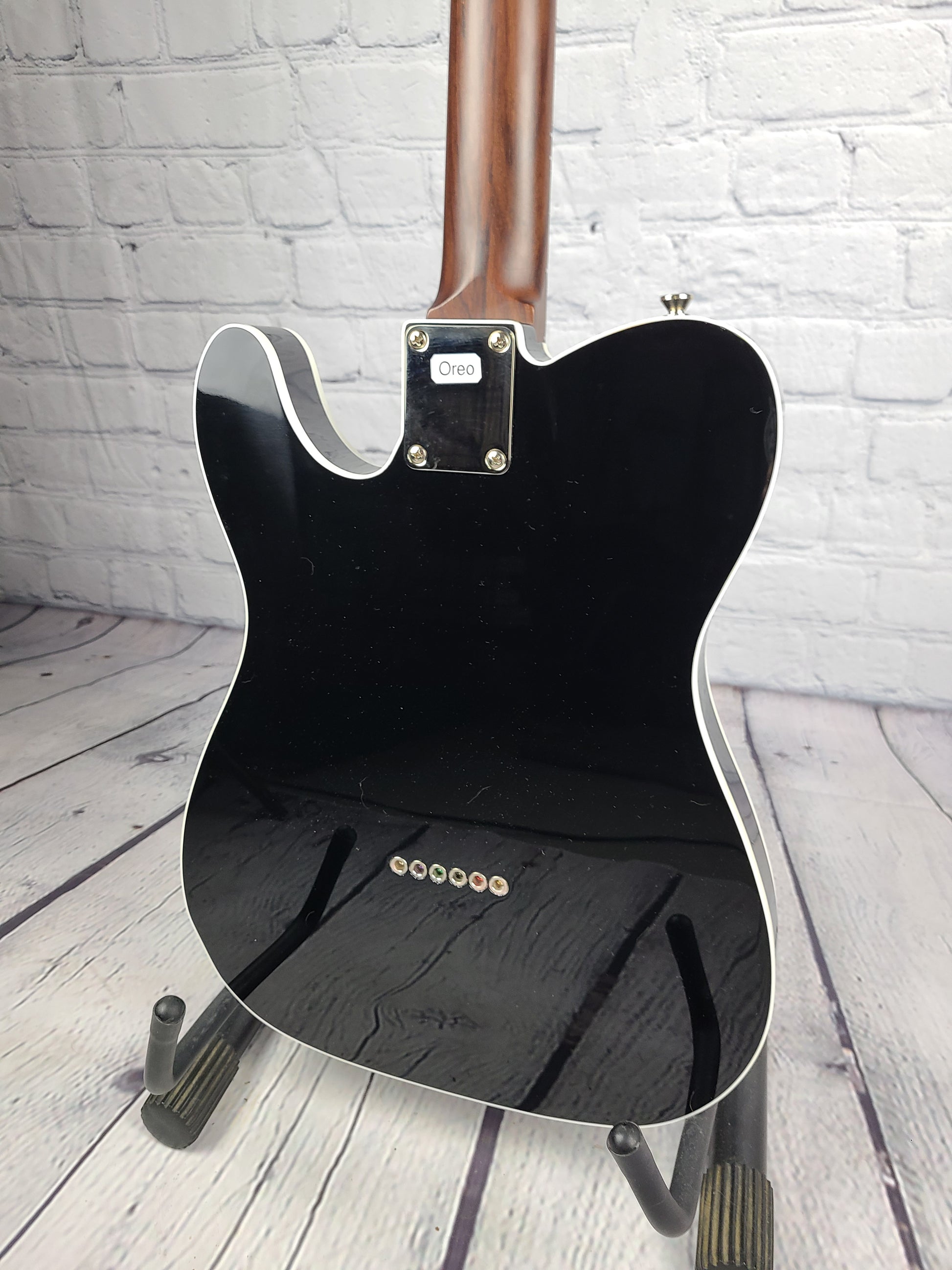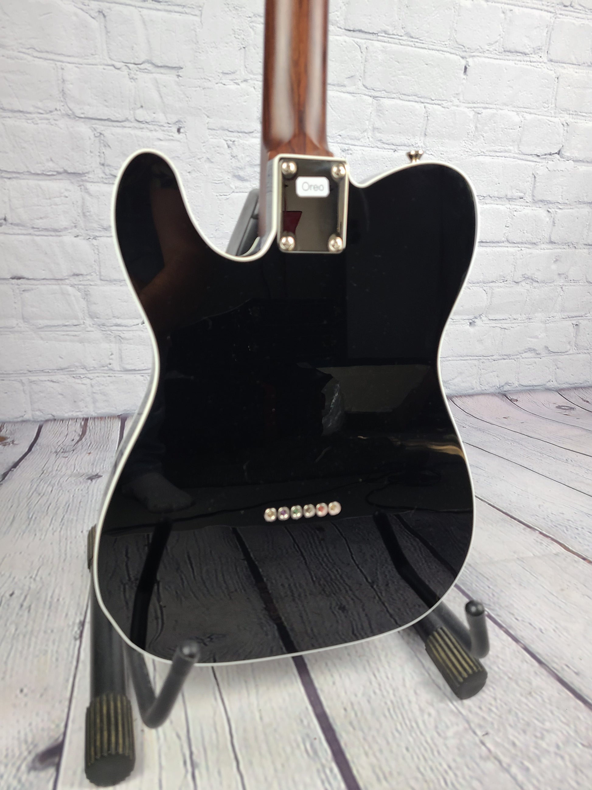 Amazing hand selected dark, figured Indian rosewood neck and fretboard. Stainless Steel 6105 frets ensure playability is slinky and quick. A medium C neck shape with 12" radius should satisfy vintage and modern players alike.