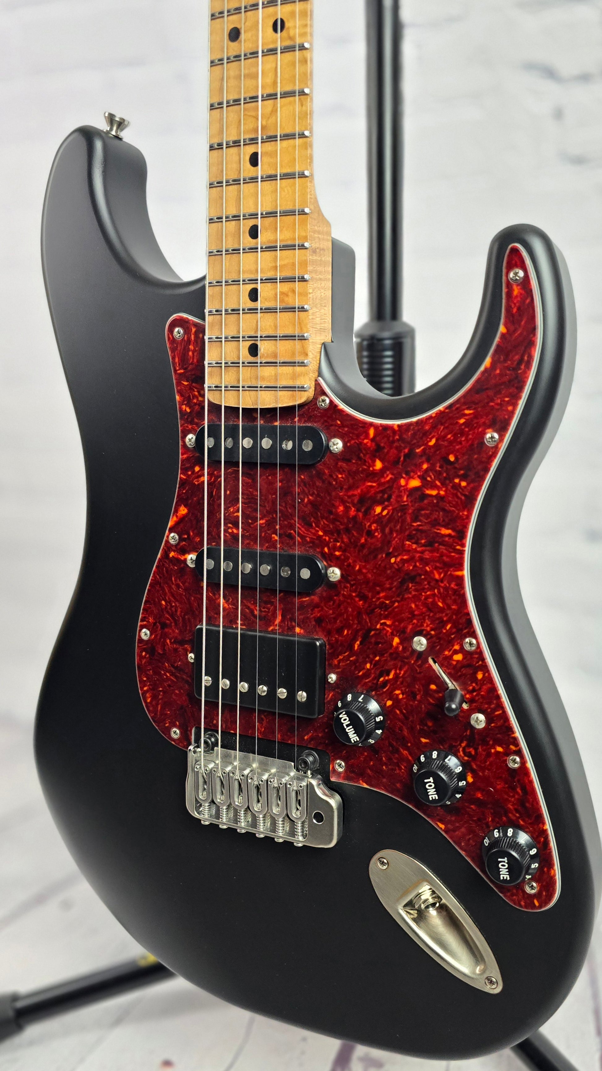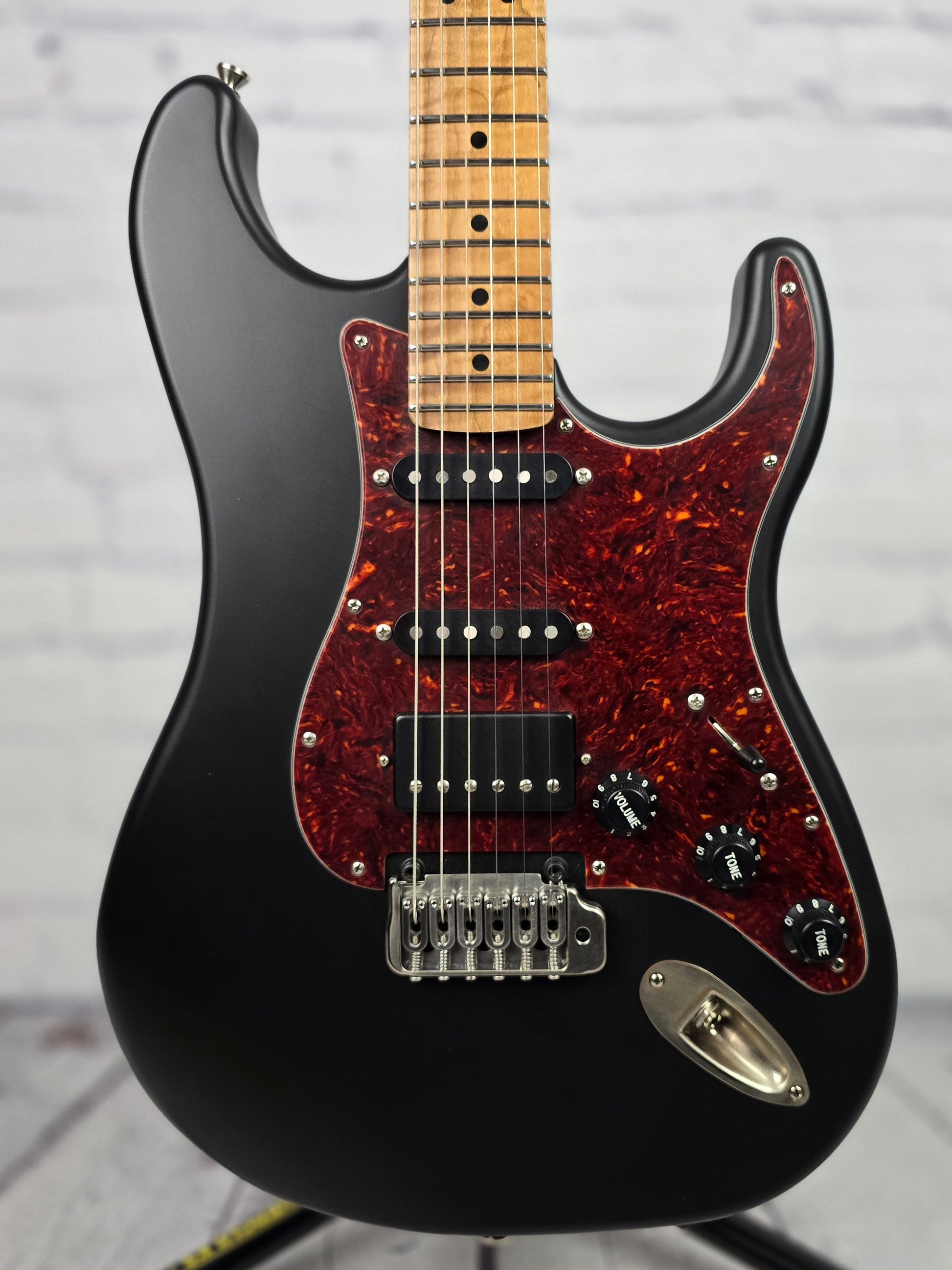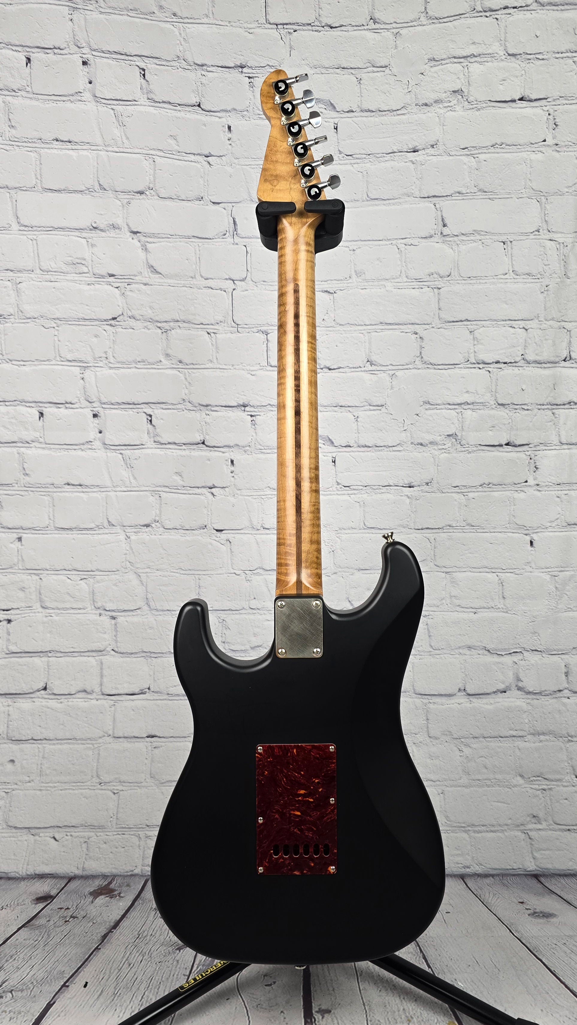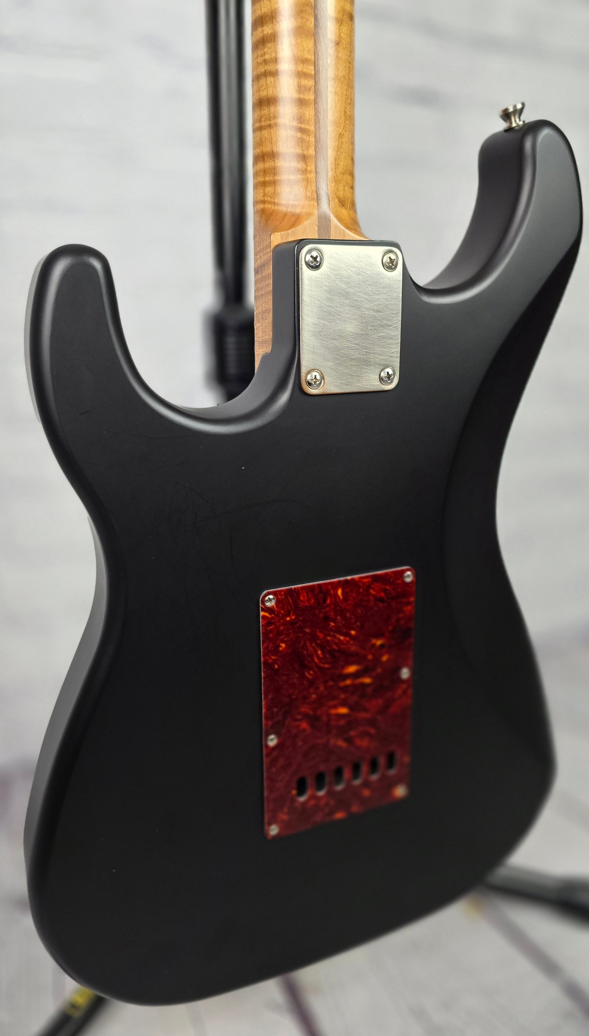 Matte black thin skin nitro finish is loud and resonant and the handwound pickups are dynamic and robust. The star of the show here is the effortlessly playable roasted maple neck, figured in such a deep and unique grain pattern