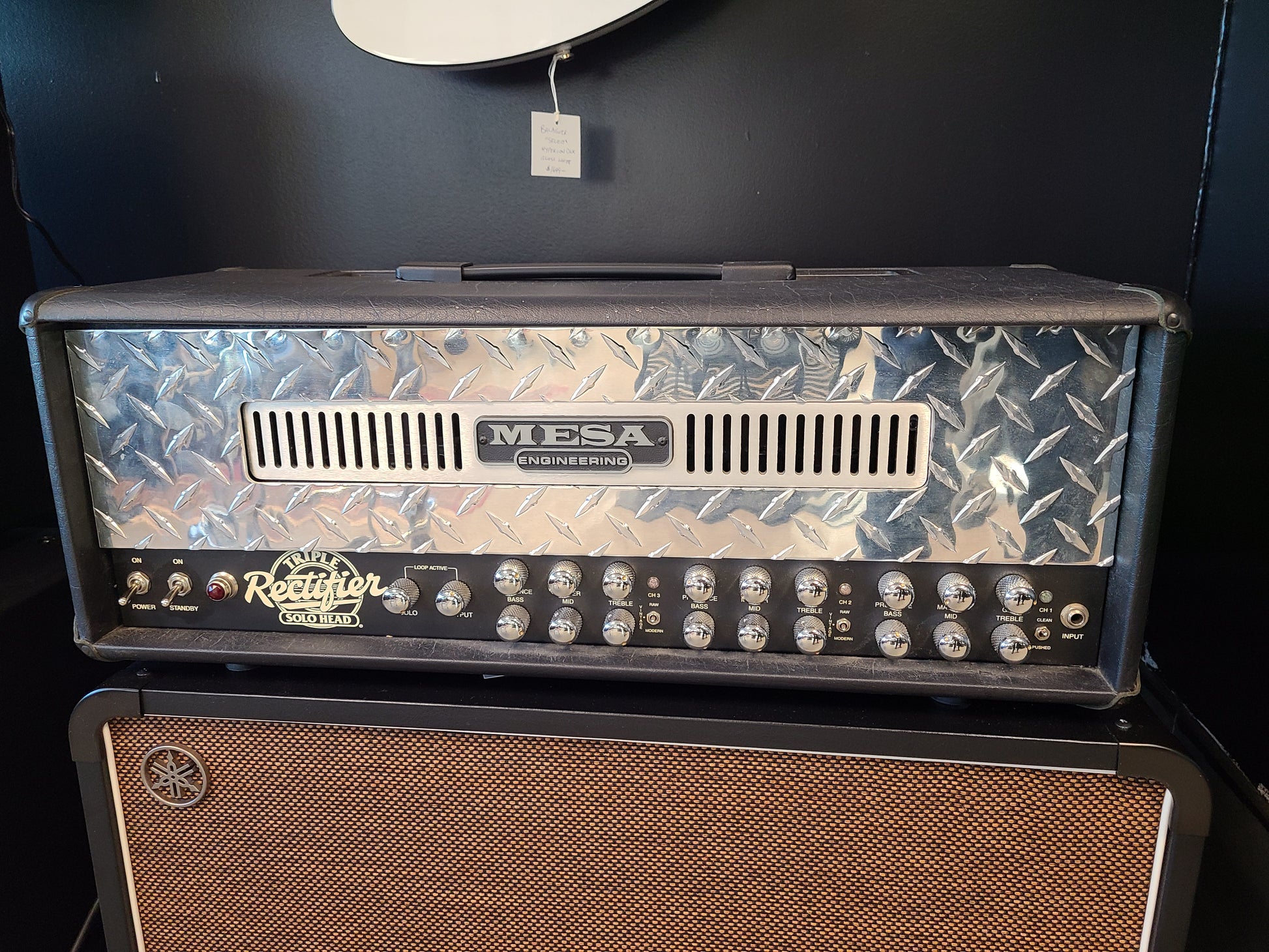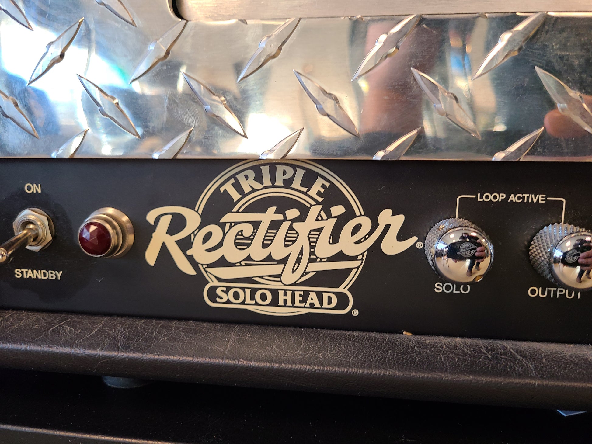 USED Mesa Boogie Triple Rectifier 150w Tube Amp Head. Overall clean - no dings or tears in the tolex. Front logo plate is slightly crooked, but appears to be well secured. Amp is incredibly loud and all channels work, free from additional noise.