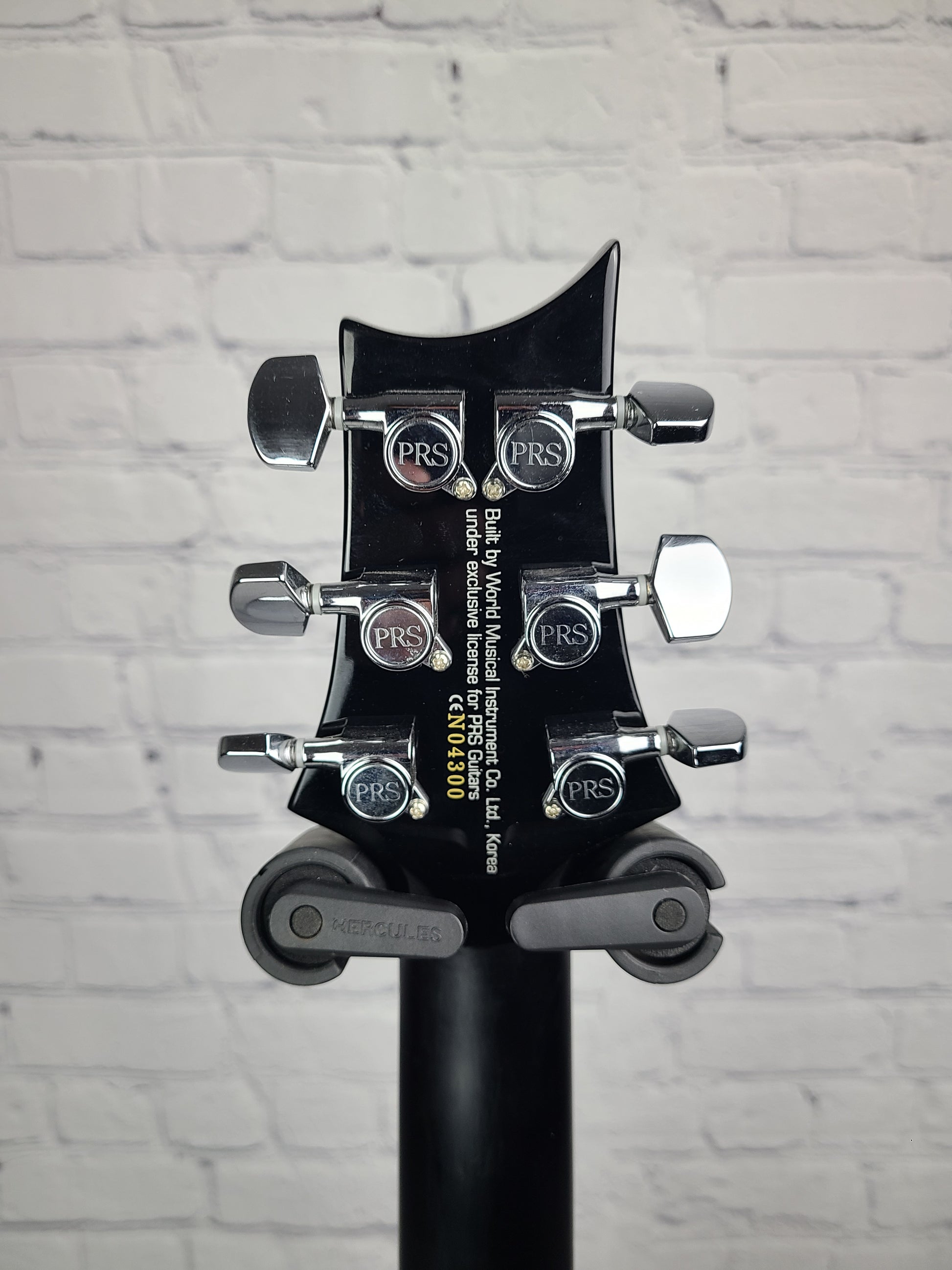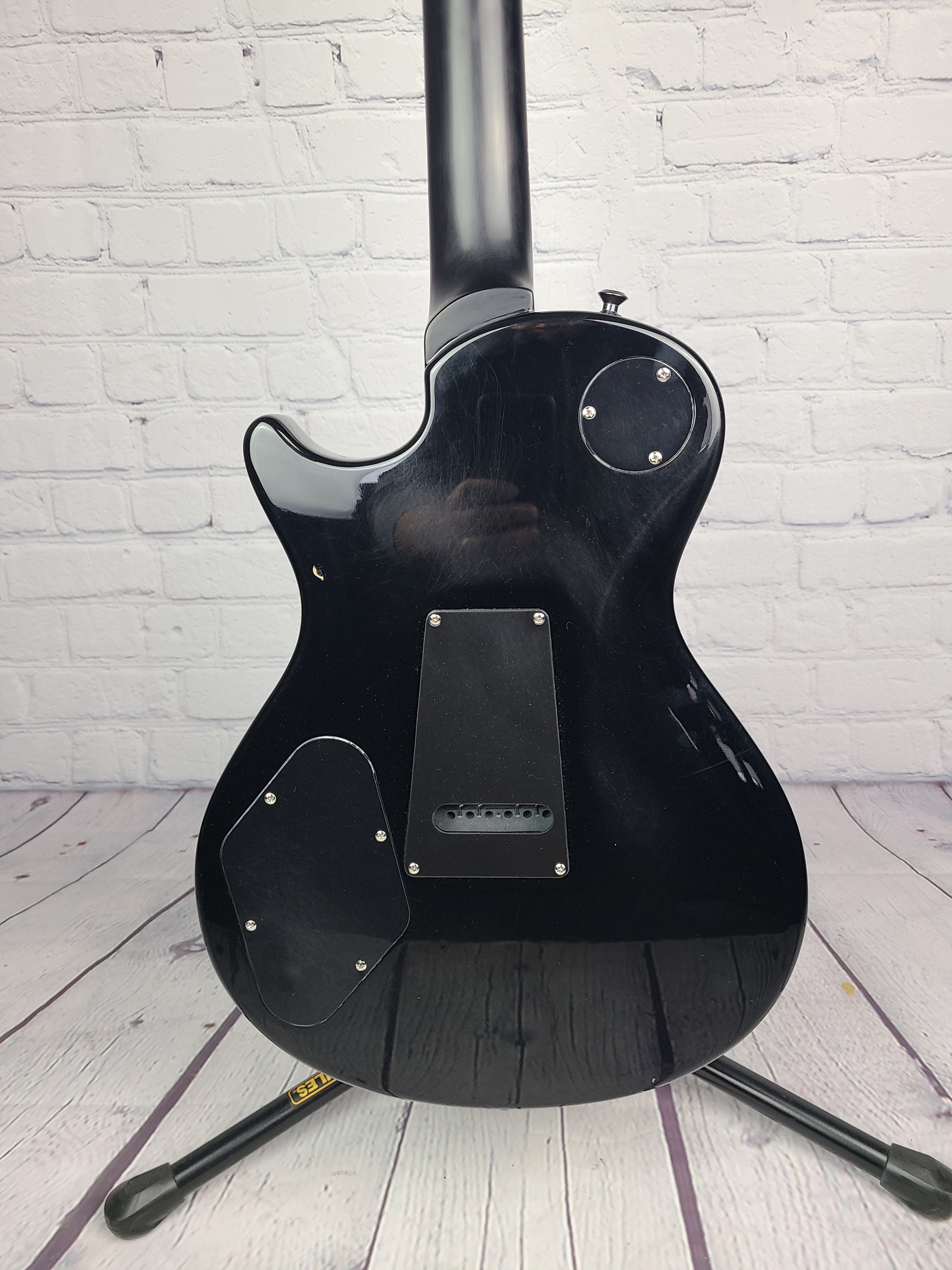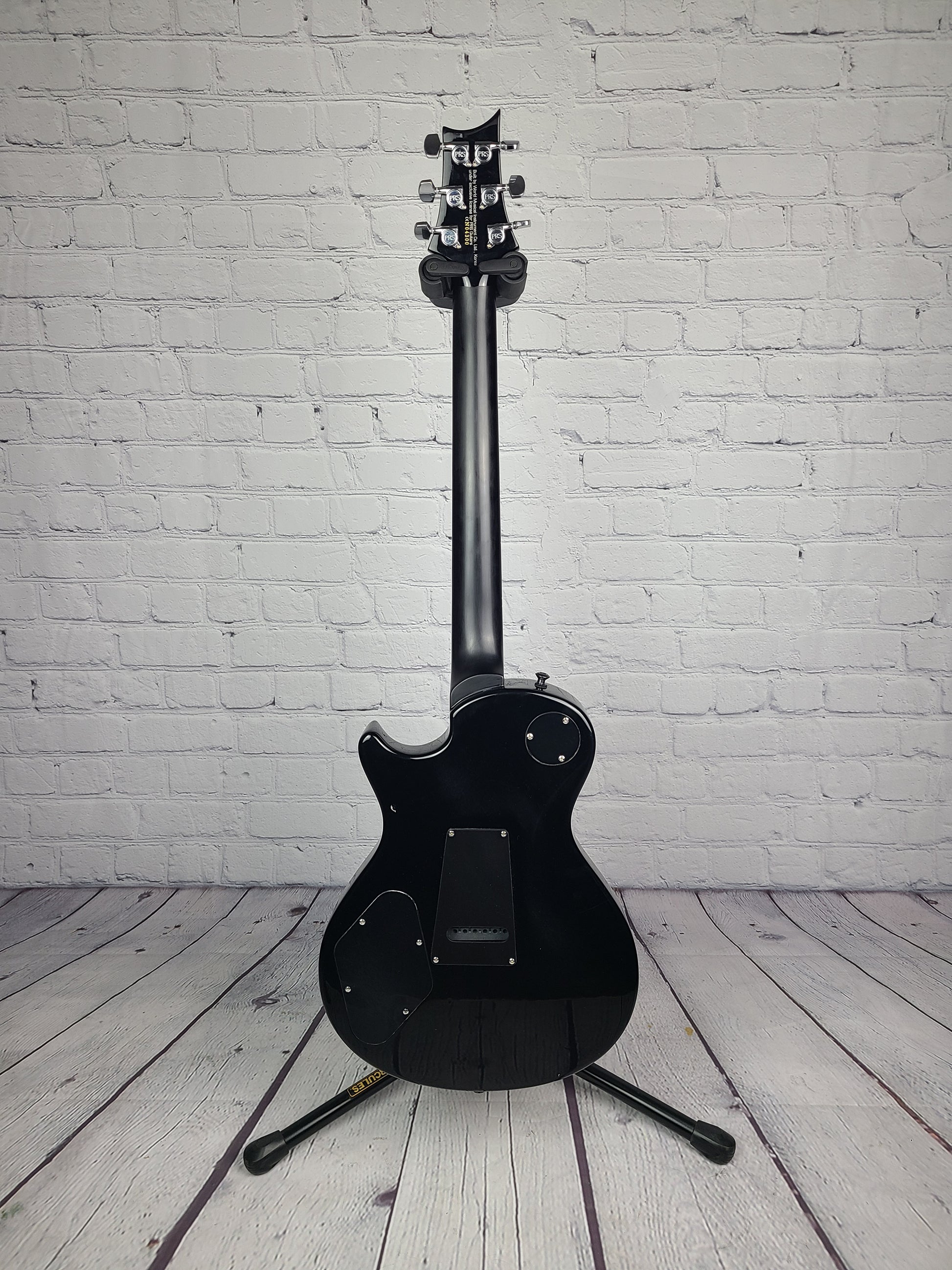 An affordable version of the PRS Mark Tremonti signature model, this one in a Charcoal Burst finish to the beveled flame maple veneer top and mahogany body. The guitar has a 25” scale length with two SE Tremonti S humbuckers, PRS Bird inlays, and a PRS designed tremolo system with a trem-up rout!