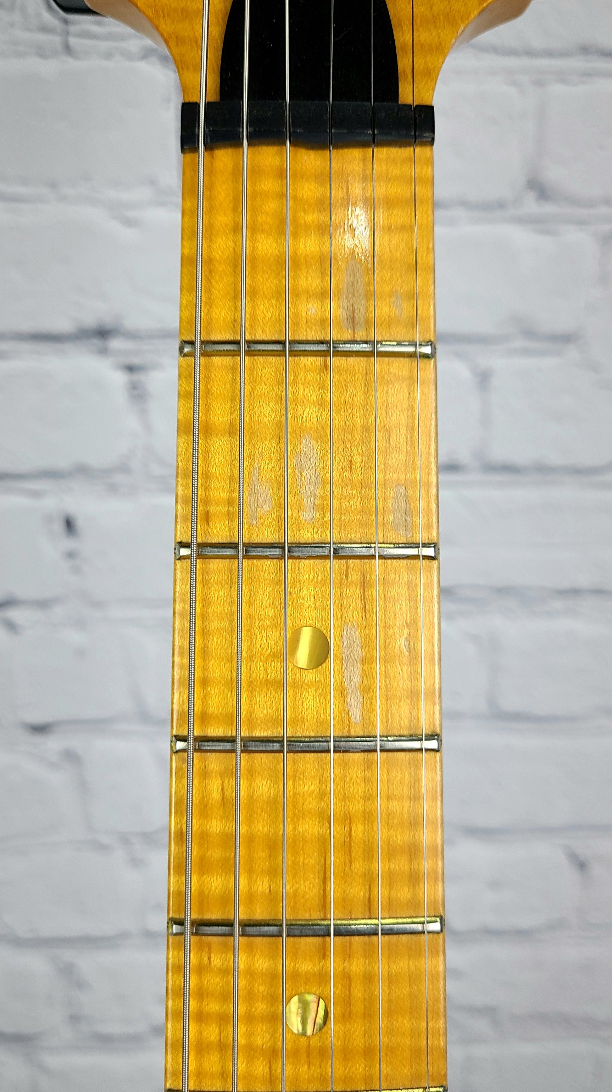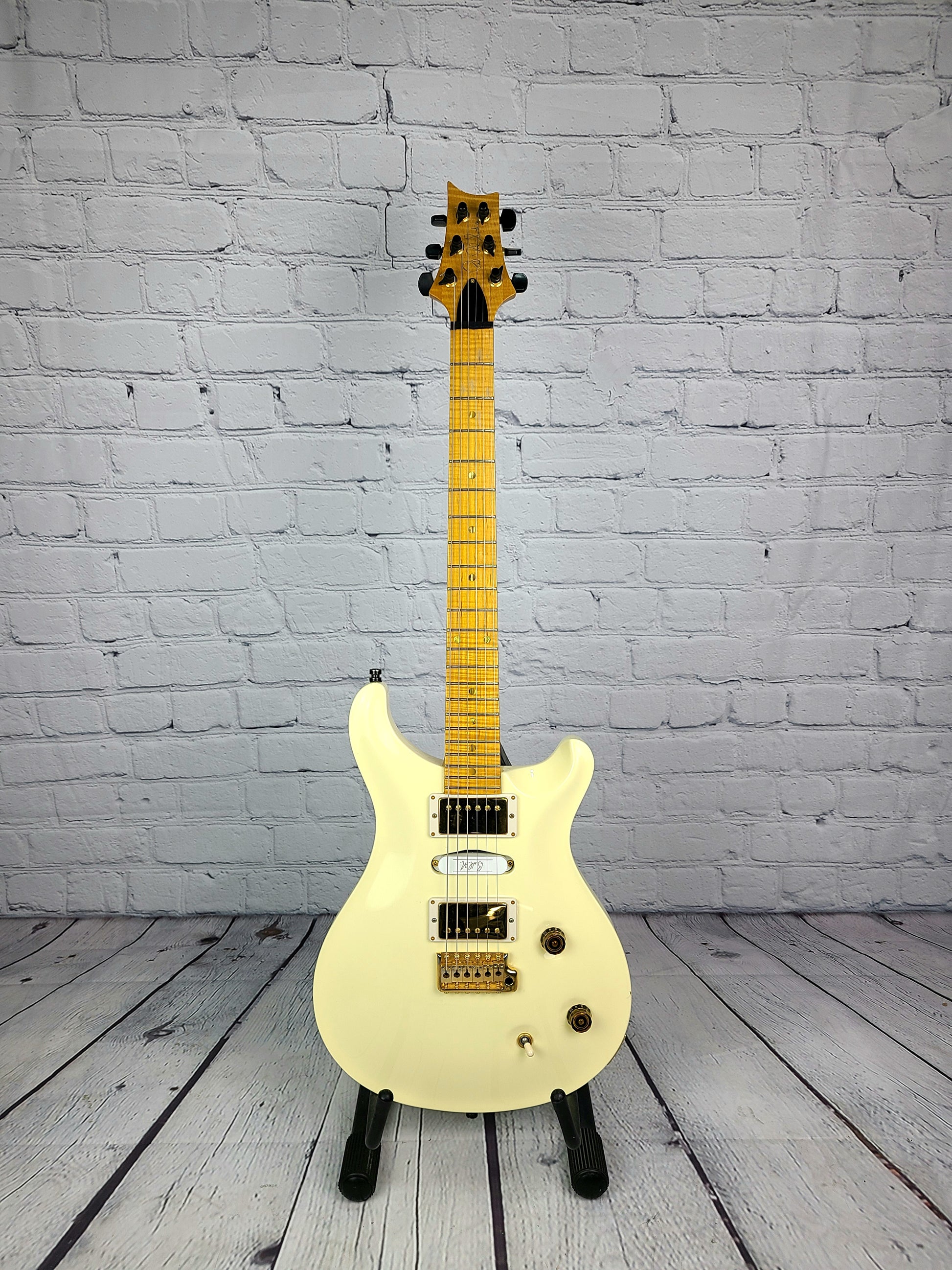 Just in!! A very unique older Swamp Ash Special with some honest playwear, but overall nice condition for a nearly 20 year old guitar. This guitar features a very smooth antique white finish and a terribly rare highly figured flame maple neck. This caliber of neck would currently be only available via Wood Library or Private Stock.