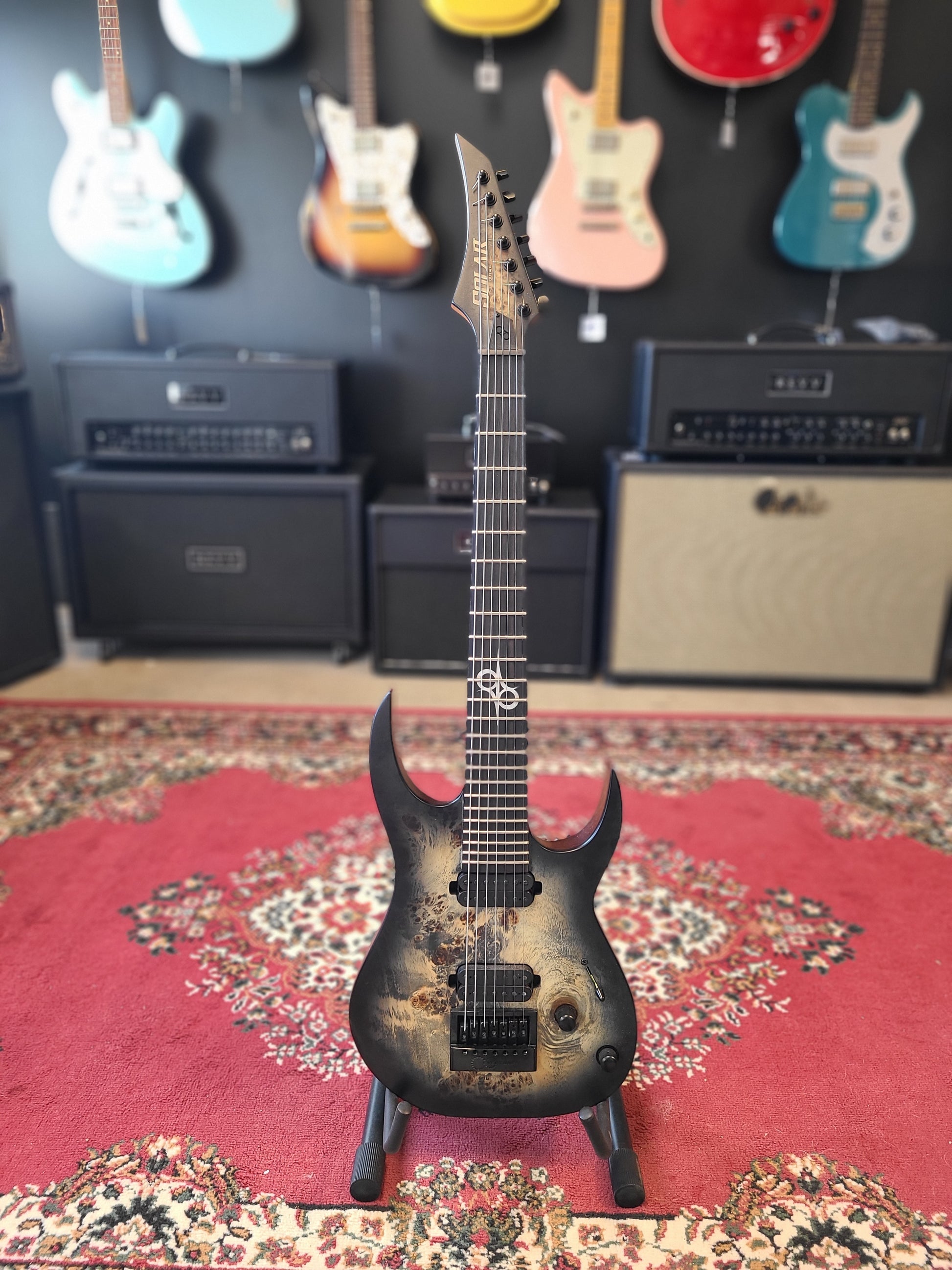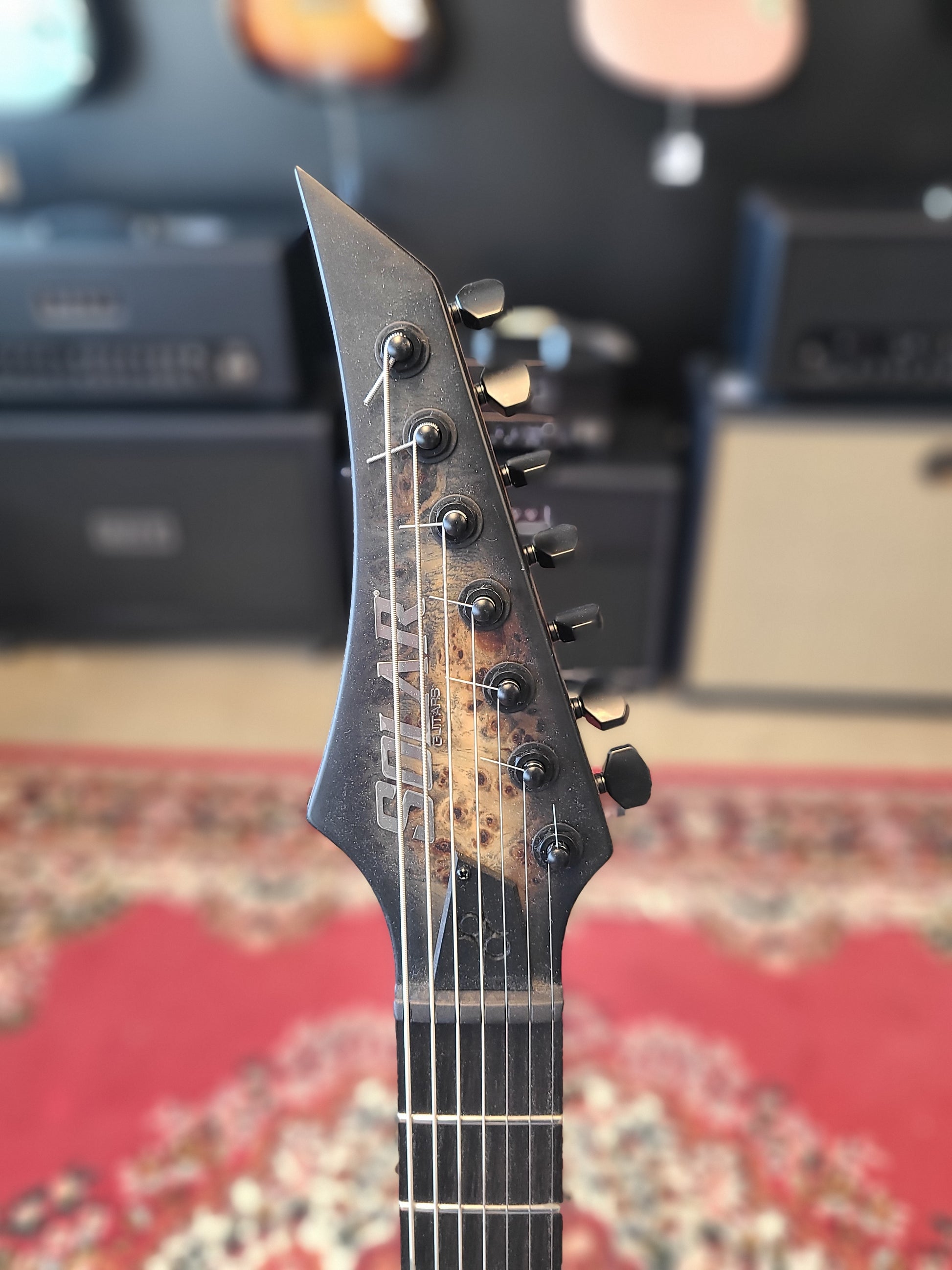 USED Solar S1.7PB Poplar Burl 7 String Evertune Guitar