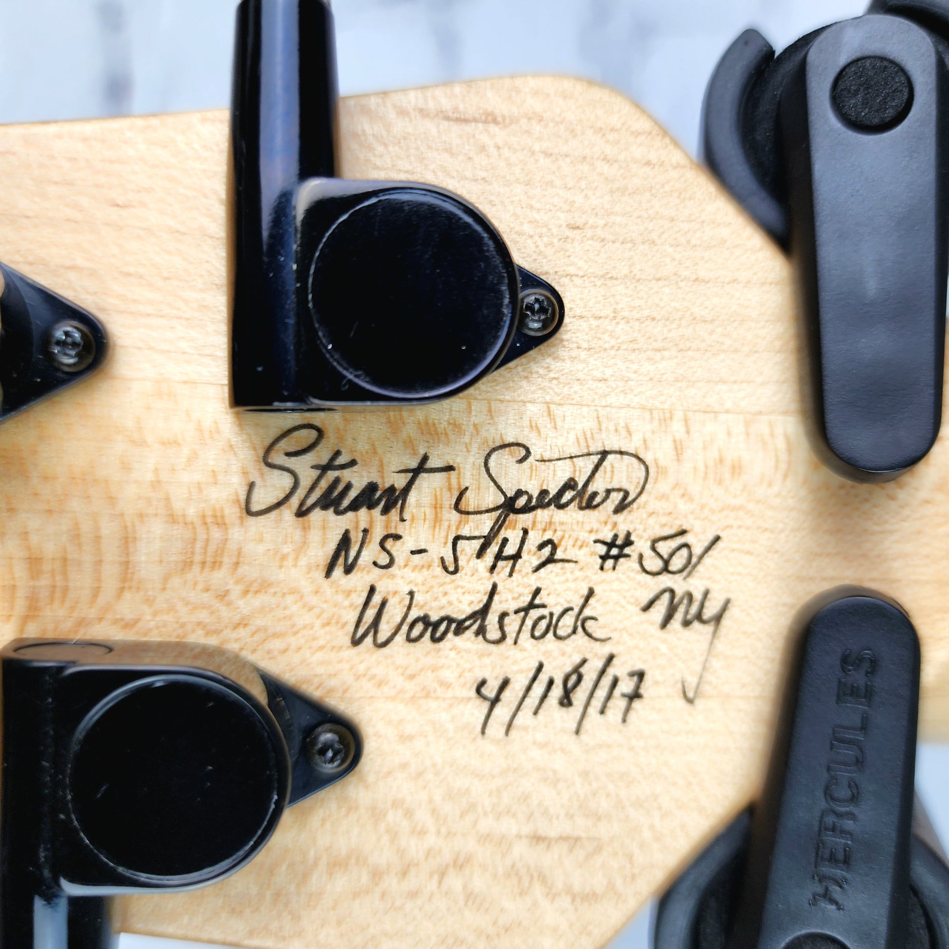 Just in! Incredible and rare USA built Spector NS 5 string from 2017, signed by Stuart Spector. This is a well cared for example with a gorgeous quilt top and Aguilar Super Double humbuckers + OBP-3 Preamp. Make no exception, this bass is equally at home on the stage or in the studio and could be considered an heirloom quality instrument.