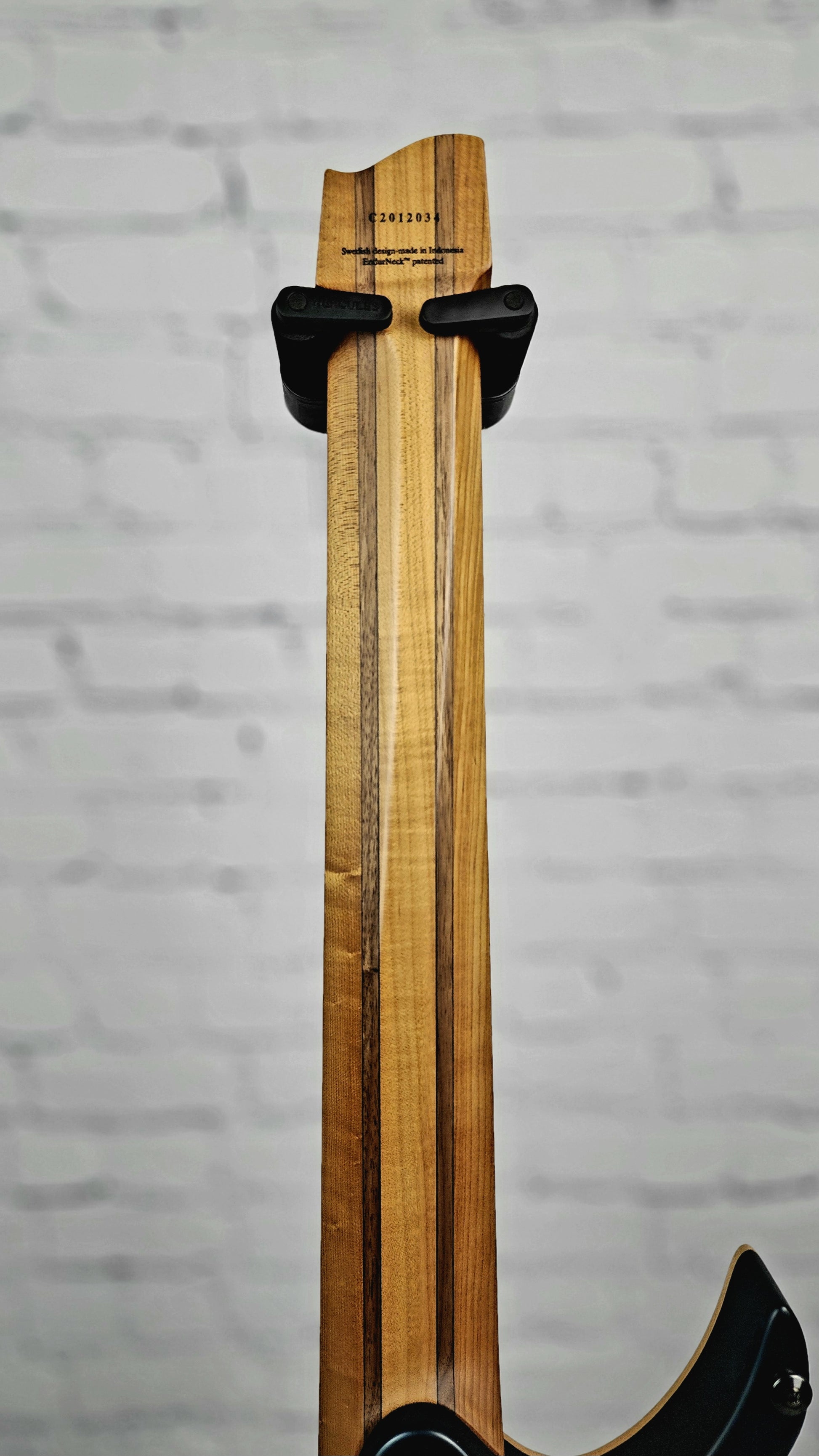 The body consists of solid American Basswood with Maple top capped with either Flame or Quilted Maple for a balanced and punchy tone that is superbly complemented by the roasted Maple neck and fretboard. One of the classic wood combinations espoused by top custom guitar builders and world class artists alike, Basswood/Maple body and Maple neck/fretboard combo provides the ideal balance between warmth with full-bodied richness and strong high-midrange with sweet singing treble.