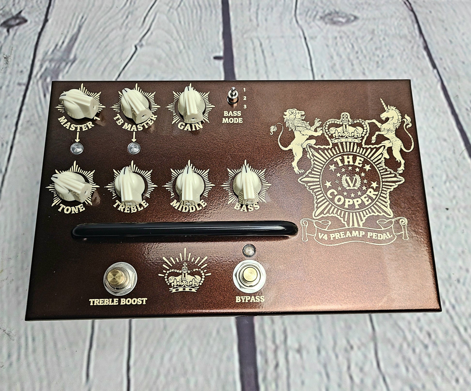 V4 The Copper is a pedal preamp that delivers genuine all-valve clean and overdrive. Use it straight into the front of your amp or recording interface, or alternatively use it in conjunction with your amp's FX loop to bypass the front end of your existing amp entirely for a whole new sound experience. This is definitely no 'ordinary' overdrive pedal!