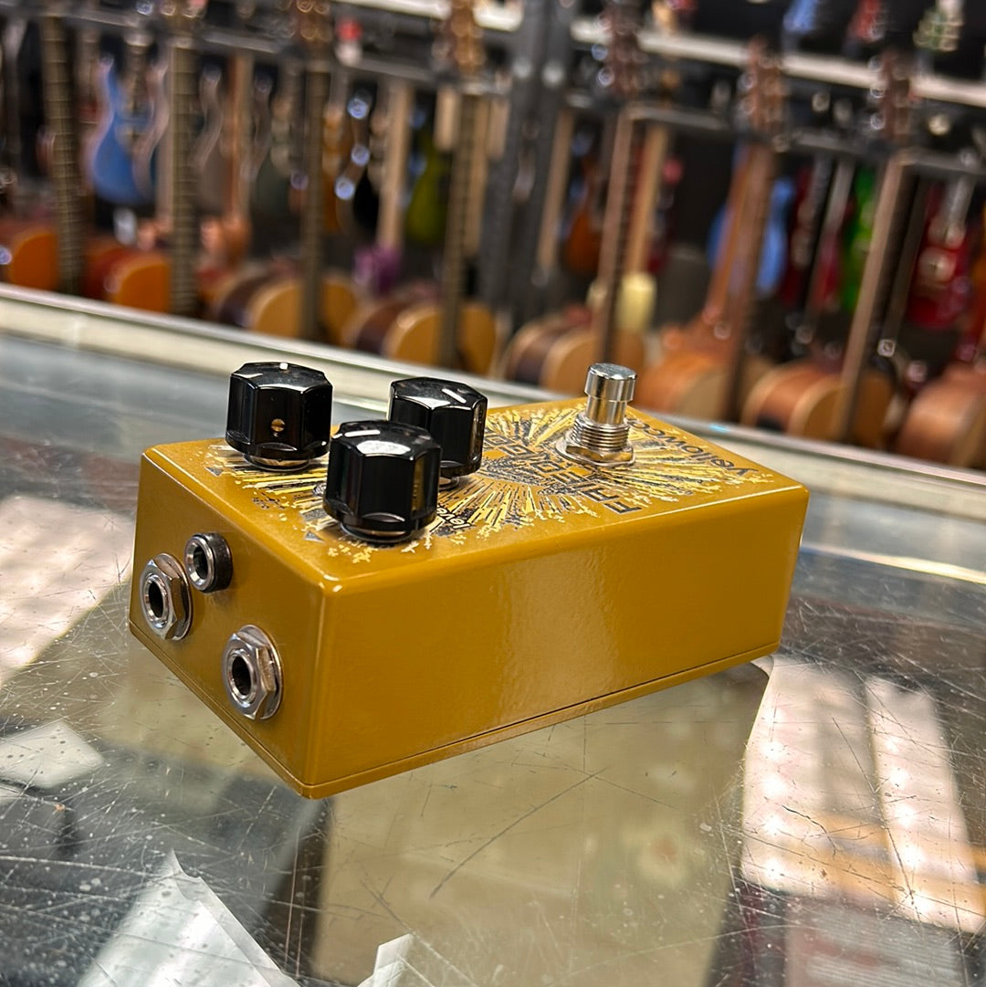 A straight forward and versatile overdrive type pedal that ranges from mild, to a blown out ‘Fried’ almost ‘fuzz-ish’ tube amp. Designed to complement the front end tube amp while capable of mixing wonderfully with the dirt channel to provide more punch and grit. Versatile gain range, and a mild tone control to keep the overall voicing of the pedal intact. Powder coated and UV printed enclosure.
